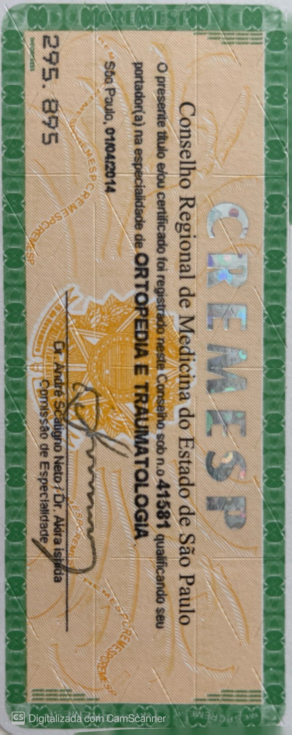 Número de registro: CRM SP 101460 - RQE Nº: 41581