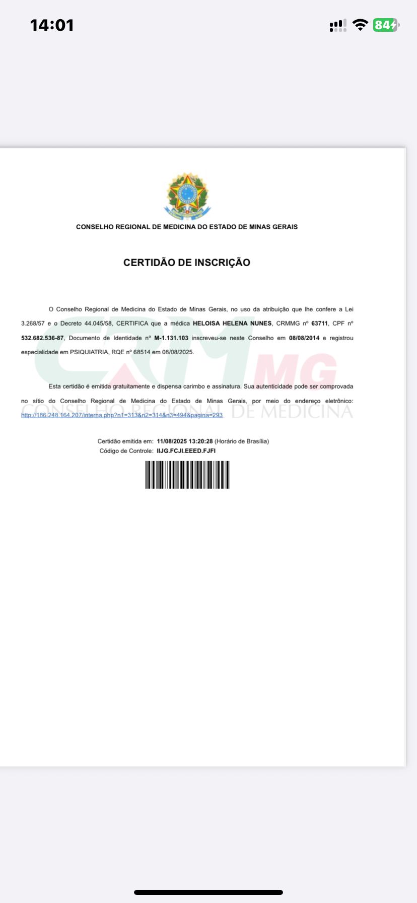 Número de registro: CRM MG 63711 RQE Nº 68514