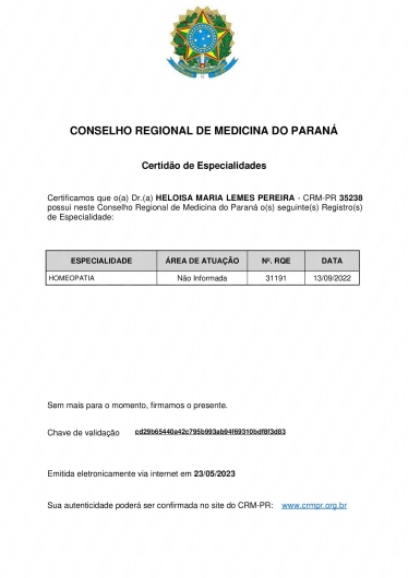 Quais são as principais especialidades de Heloisa Lemes?Heloisa Lemes é homeopata. Te mostramos alguns dos serviços oferecidos pelo especialista graças à sua trajetória e vasta experiência: Consulta homeopatia, Teleconsulta, Primeira consulta Homeopatia.