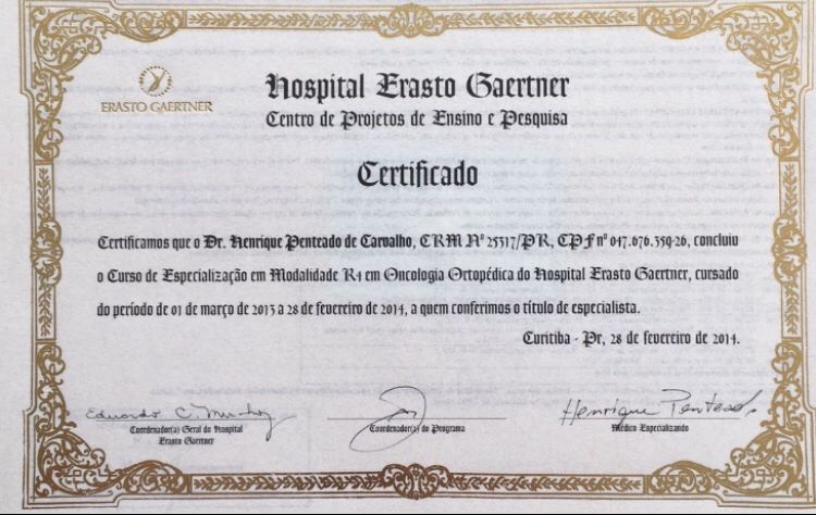 Quais são as principais especialidades de Henrique Penteado de Carvalho?Henrique Penteado de Carvalho é ortopedista - traumatologista. Te mostramos alguns dos serviços oferecidos pelo especialista graças à sua trajetória e vasta experiência: Primeira consulta ortopedia e traumatologia, Consulta de oncologia ortopédica, Ressecção Simples De Tumor Osseo, Ressecção de tumor de partes moles, Tratamento para Tumor Ósseo, Teleconsulta.