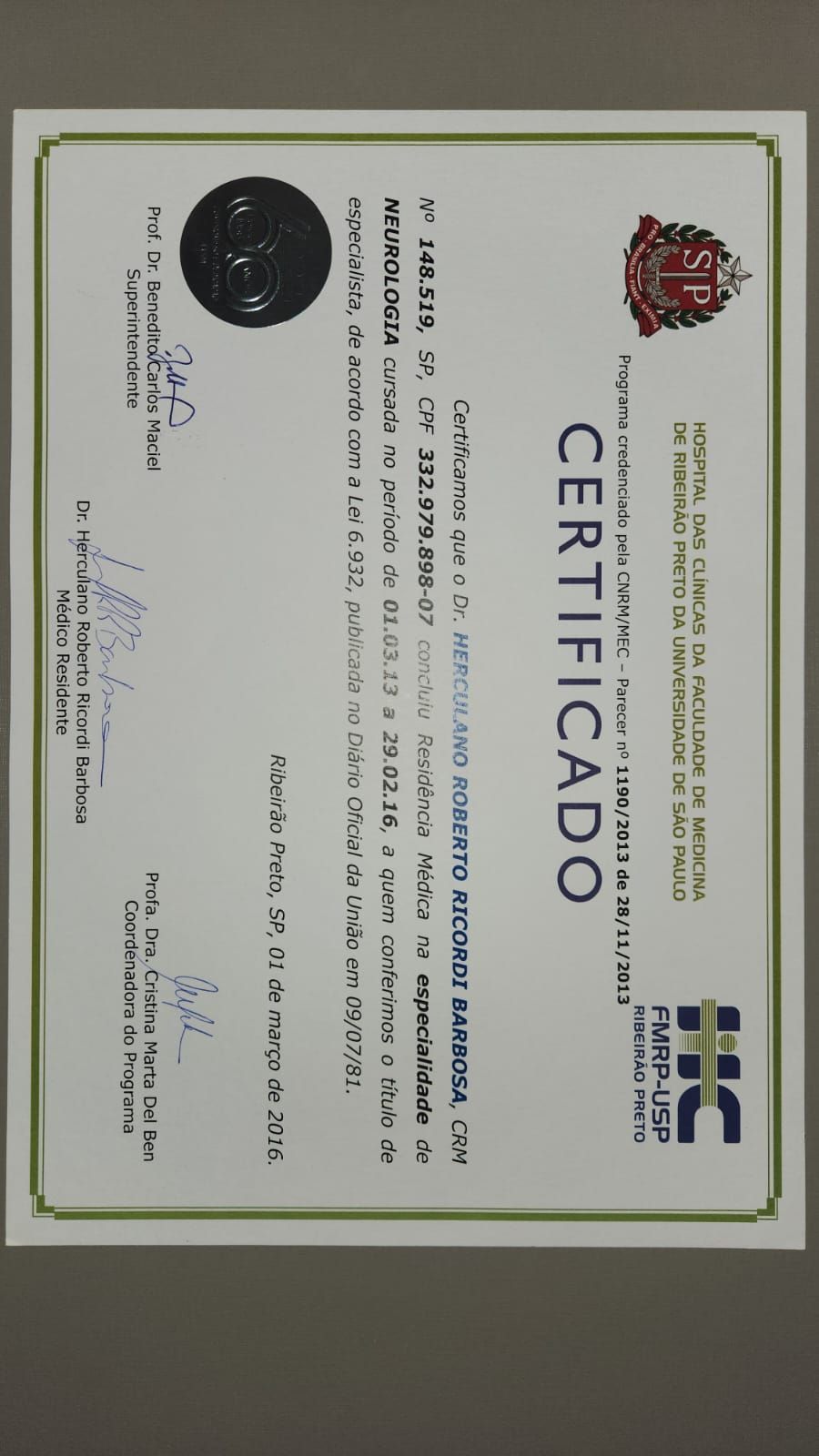 Número de registro: CRM SP 148519 - RQE 66772