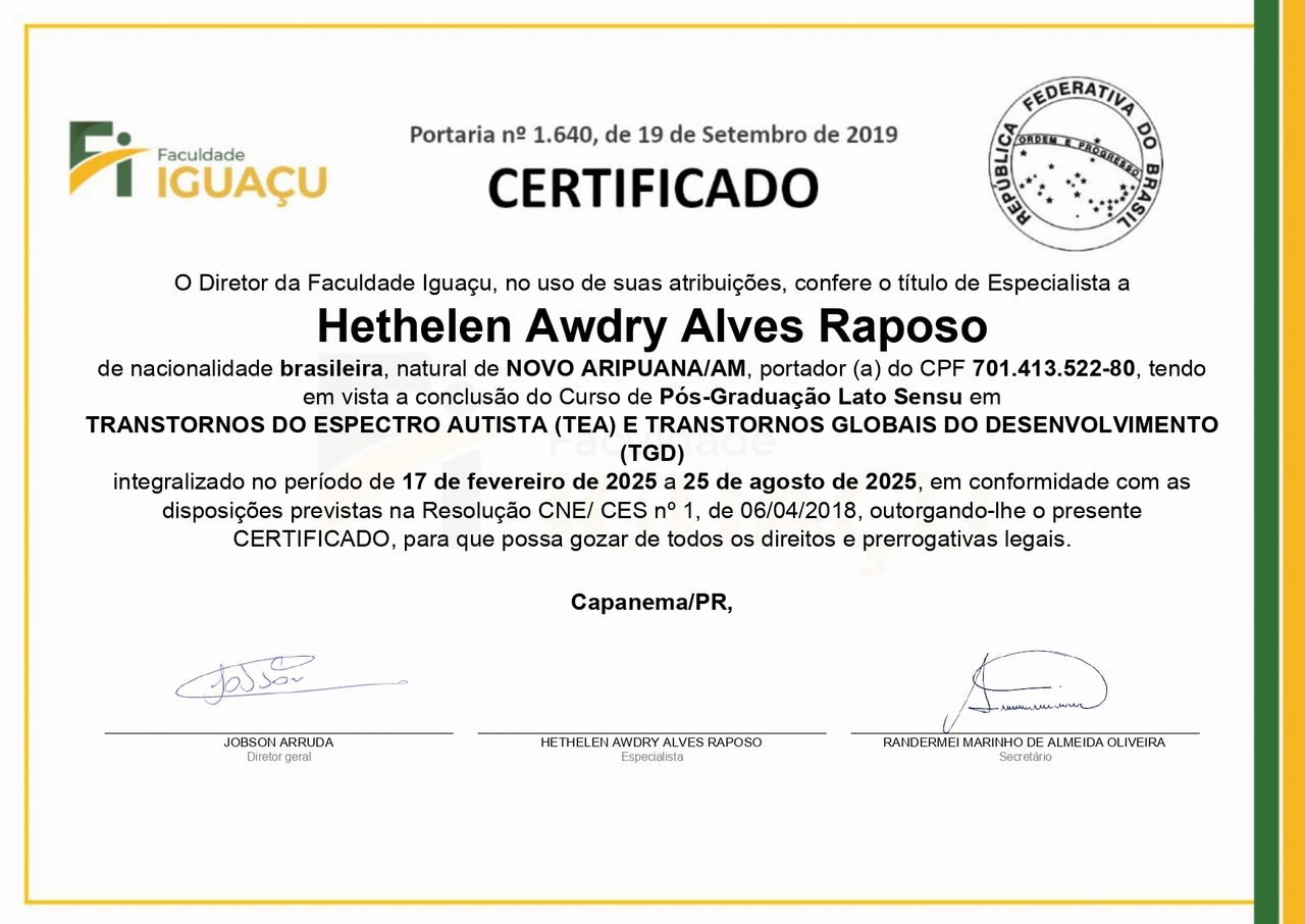 Quais são as principais especialidades de Hethelen Awdry Alves Raposo?Hethelen Awdry Alves Raposo é psicóloga. Te mostramos alguns dos serviços oferecidos pelo especialista graças à sua trajetória e vasta experiência: Primeira consulta psicologia, Acompanhamento a pacientes com ansiedade, Acompanhamento psicológico para adultos com autismo, Aconselhamento Psicológico, Acompanhamento de pacientes adultos, Apoio psicológico ao luto, Atendimento em Psicologia, Atendimento Online em Psicoterapia, Atendimento psicológico, Atendimento psicológico à mulheres em situação de violência doméstica.