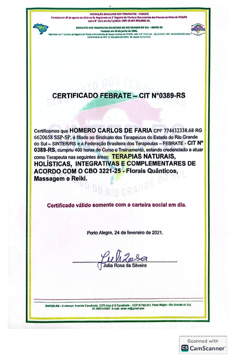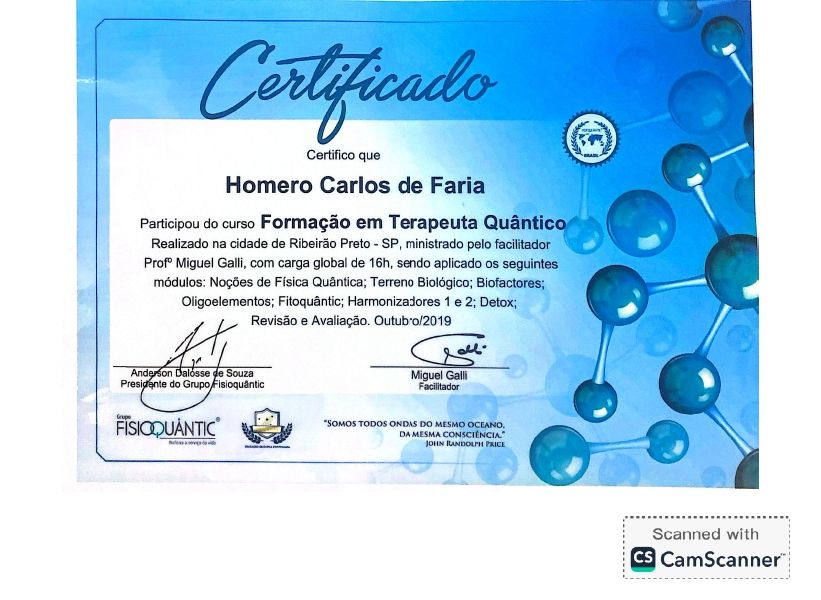Quais são as principais especialidades de Homero Faria ?Homero Faria é terapeuta complementar. Te mostramos alguns dos serviços oferecidos pelo especialista graças à sua trajetória e vasta experiência: Primeira consulta Terapias Complementares e Alternativas, Bioressonância, Ledterapia, Medicina Chinesa, Terapia com florais, Tratamento por Medicina Quântica, Fotobiomodulação, Terapia quântica, Terapia energética (Body Talk), Terapia holística.