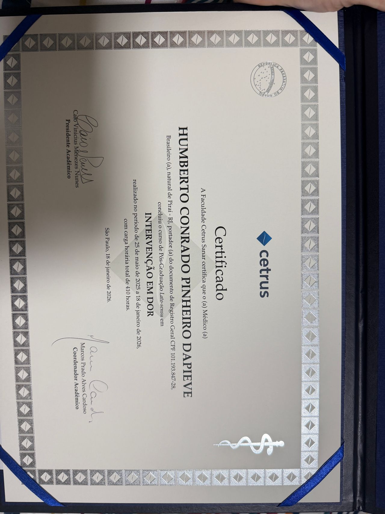 Número de registro: CRM RJ 87701-8 RQE Não Encontrada (Especialista em Dor)