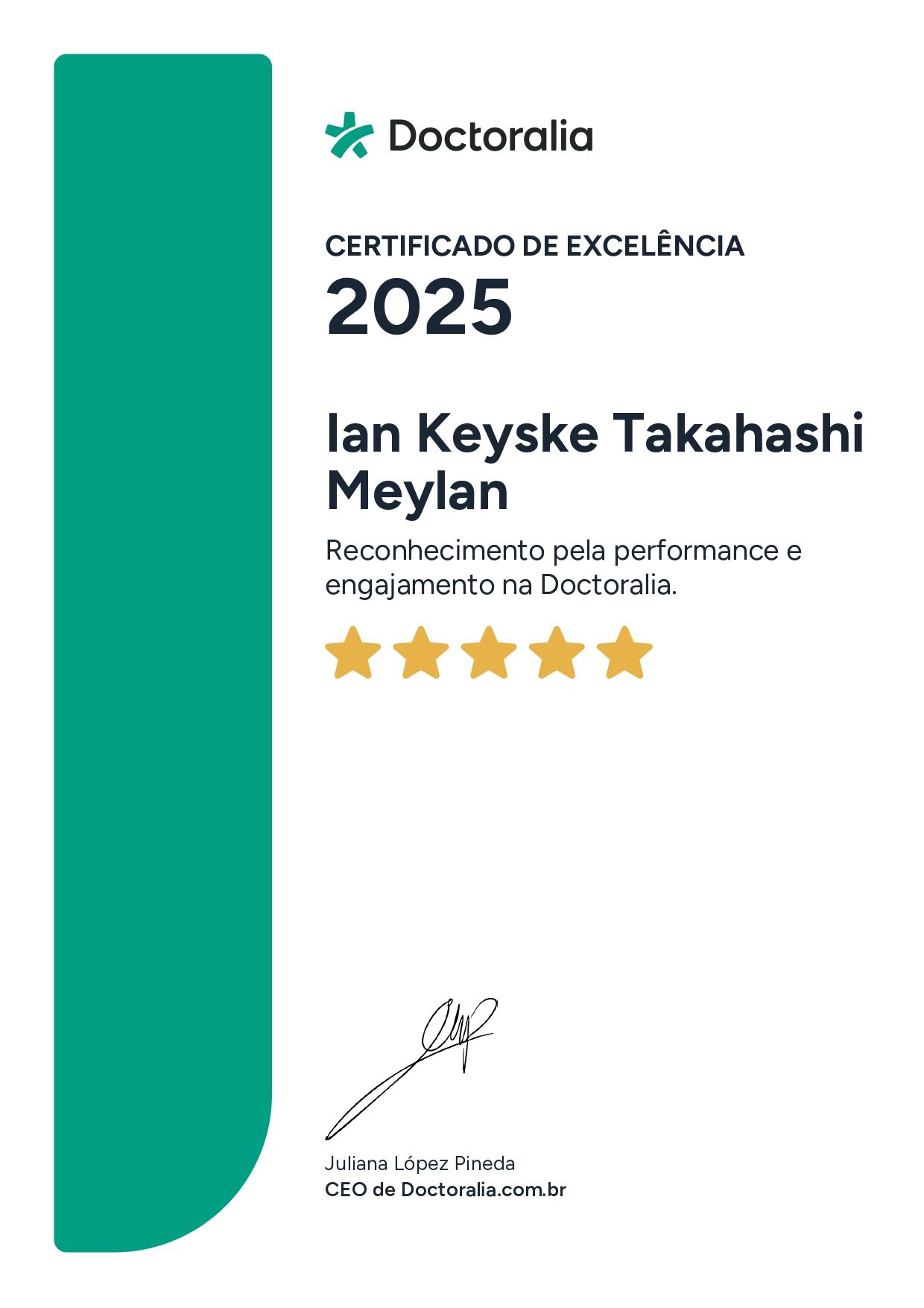 O que outros pacientes opinam sobre Ian Keyske Takahashi Meylan?Um total de 24 pacientes já deixou uma opinião honesta e real sobre Ian Keyske Takahashi Meylan, que tem uma avaliação média de 5 estrelas (de 5).