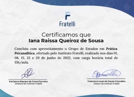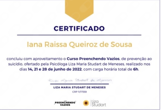Ooi! Que bom te ver por aqui! Sou psicóloga, atuo com a psicoterapia de abordagem psicanalítica e tenho especialização em Saúde Mental pela Universidade Estadual do Ceará (Uece). Na minha atuação clínica trabalho com a elaboração de conflitos familiares, questões de relacionamentos sociais e amorosos, ideações e comportamentos suicidas, e manejo dos sentimentos de angústia relacionados a diversas situações de vida. Meus atendimentos são feitos de forma on-line, tendo como público adultos e idosos. Reconhecer sua necessidade e procurar ajuda é o primeiro e mais importante passo para uma melhor saúde mental. Vamos construir juntos? Agende sua sessão!