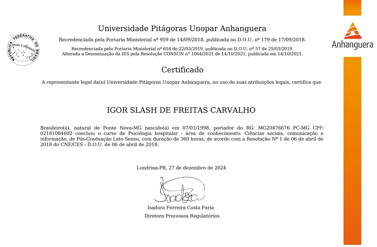 Quando poderia me consultar com Igor Carvalho?Igor Carvalho costuma ter horários disponíveis dentro da mesma semana ou para a semana seguinte. Verifique o calendário: você verá o primeiro horário disponível, atualizado em tempo real. Caso o horário sugerido não funcione para você, verifique outras datas. Agendar uma consulta é sempre imediato e gratuito.