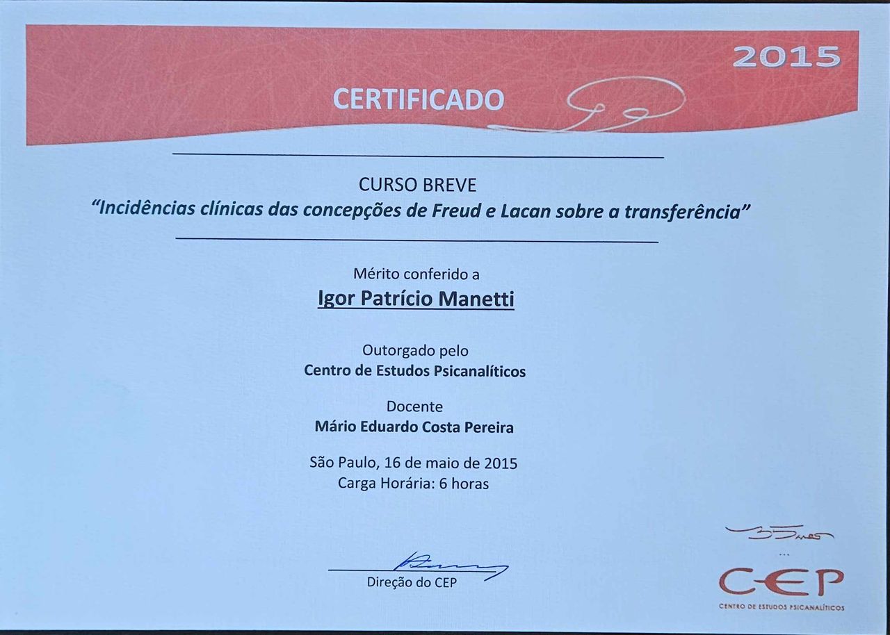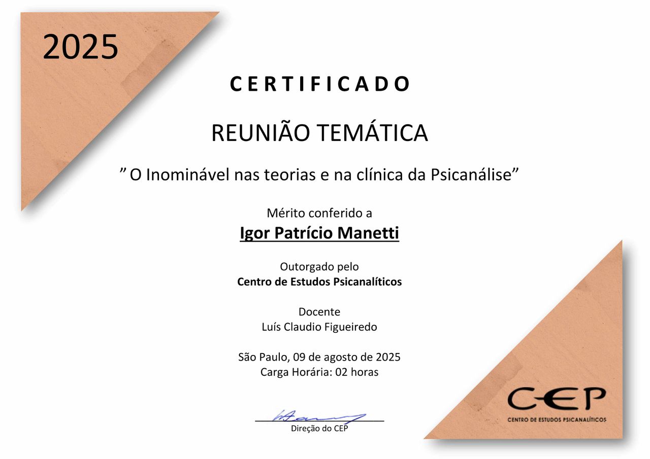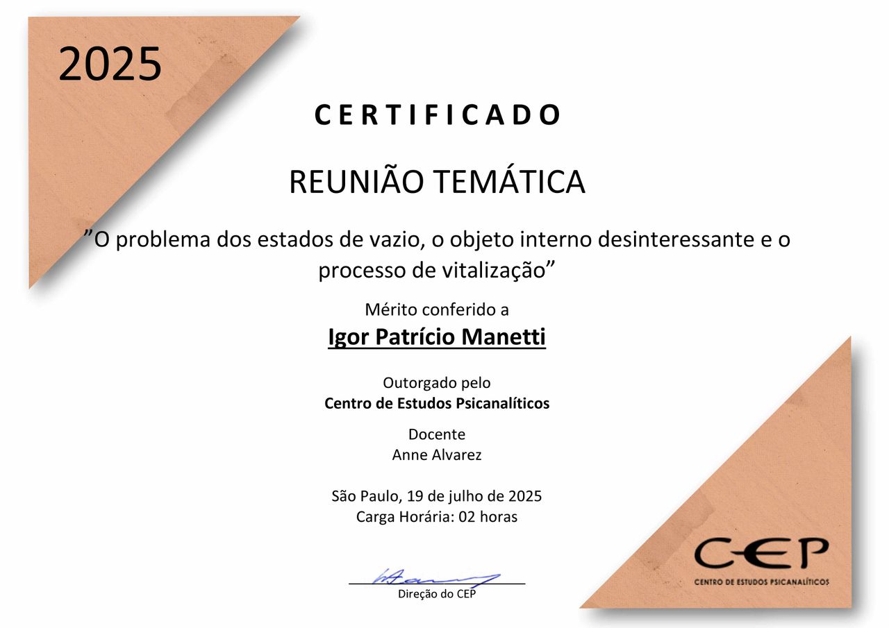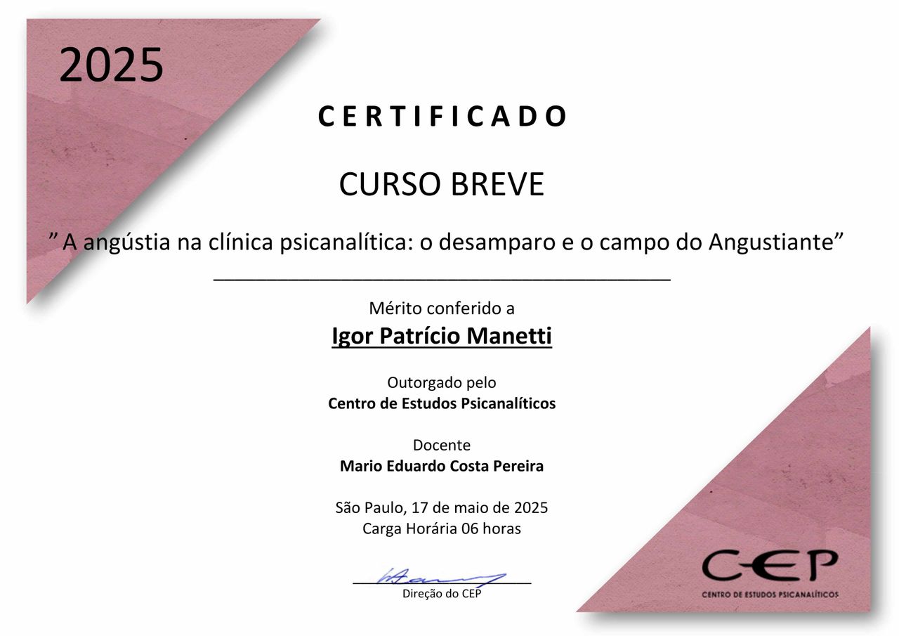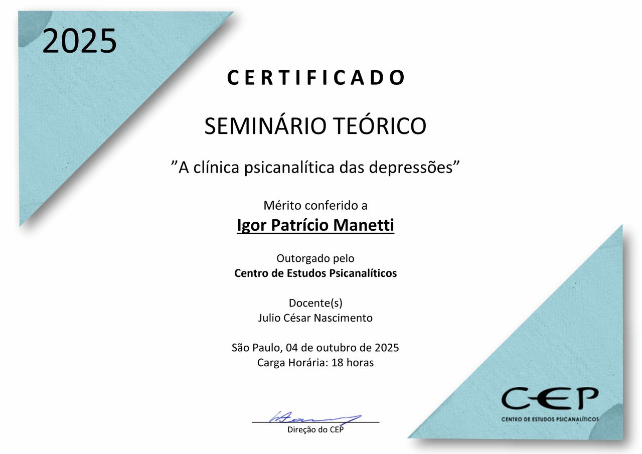 Igor é um profissional extremamente inteligente, que domina as ferramentas da análise lacaniana, fazendo da sessão um local de reflexão muito profunda e assertiva.