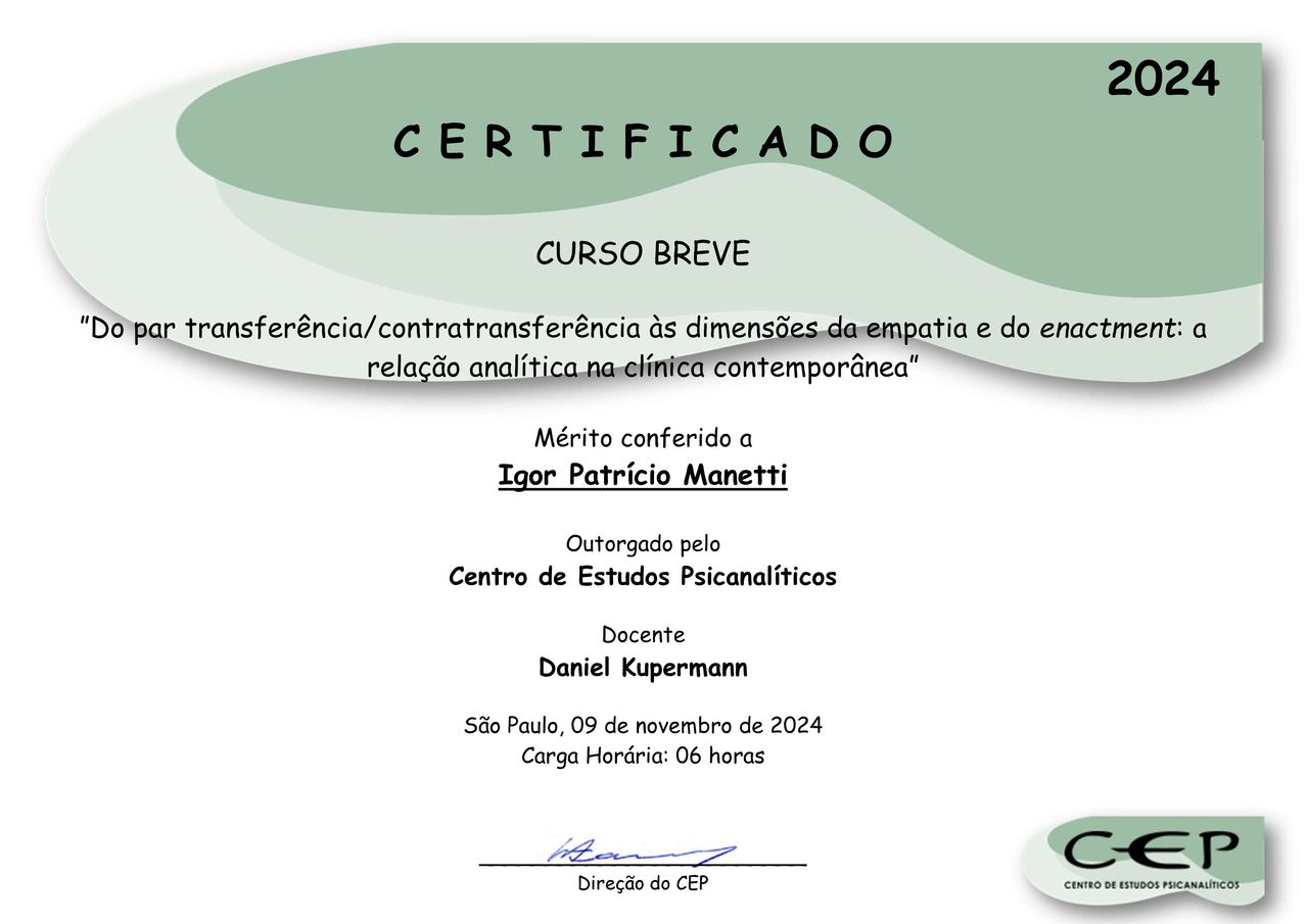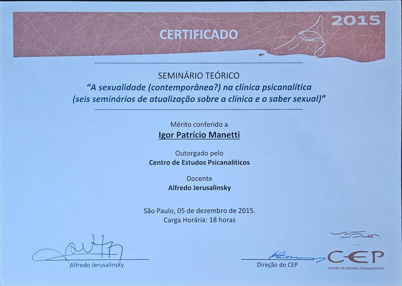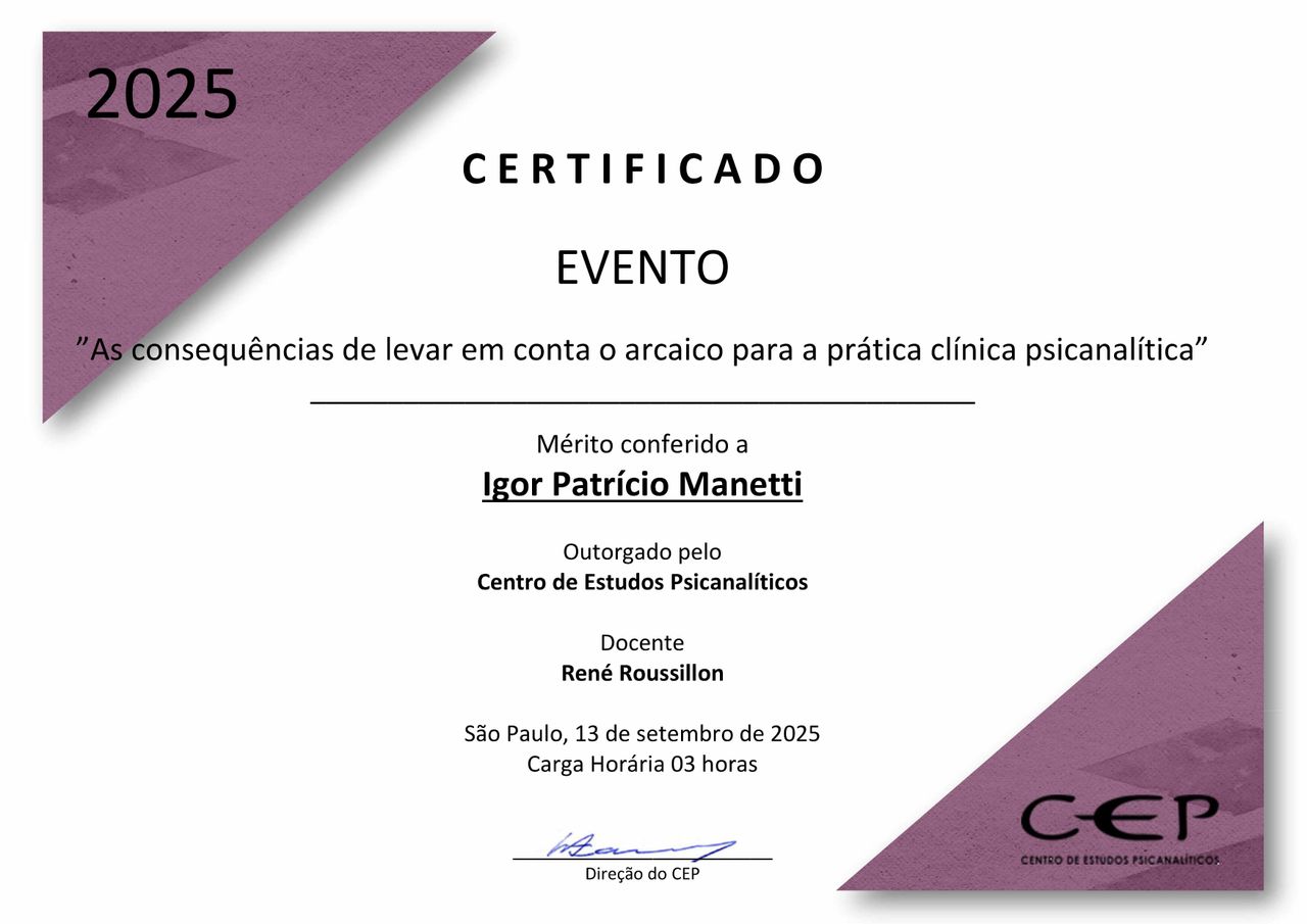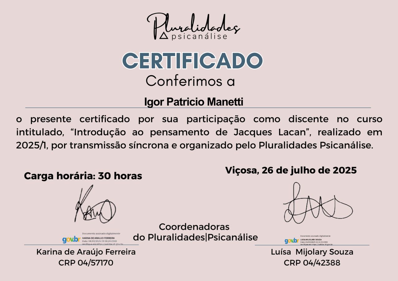 Igor é um profissional extremamente inteligente, que domina as ferramentas da análise lacaniana, fazendo da sessão um local de reflexão muito profunda e assertiva.
