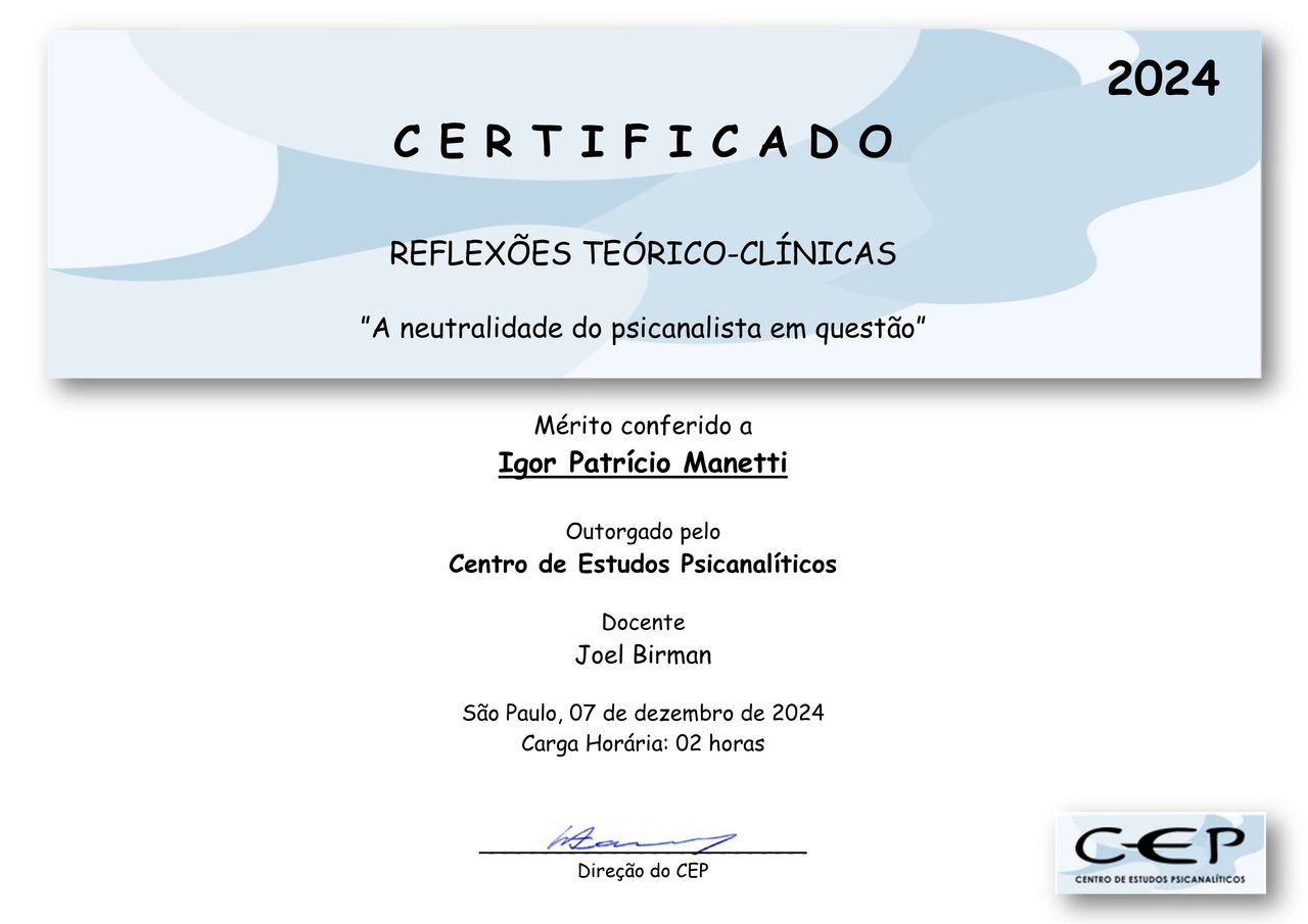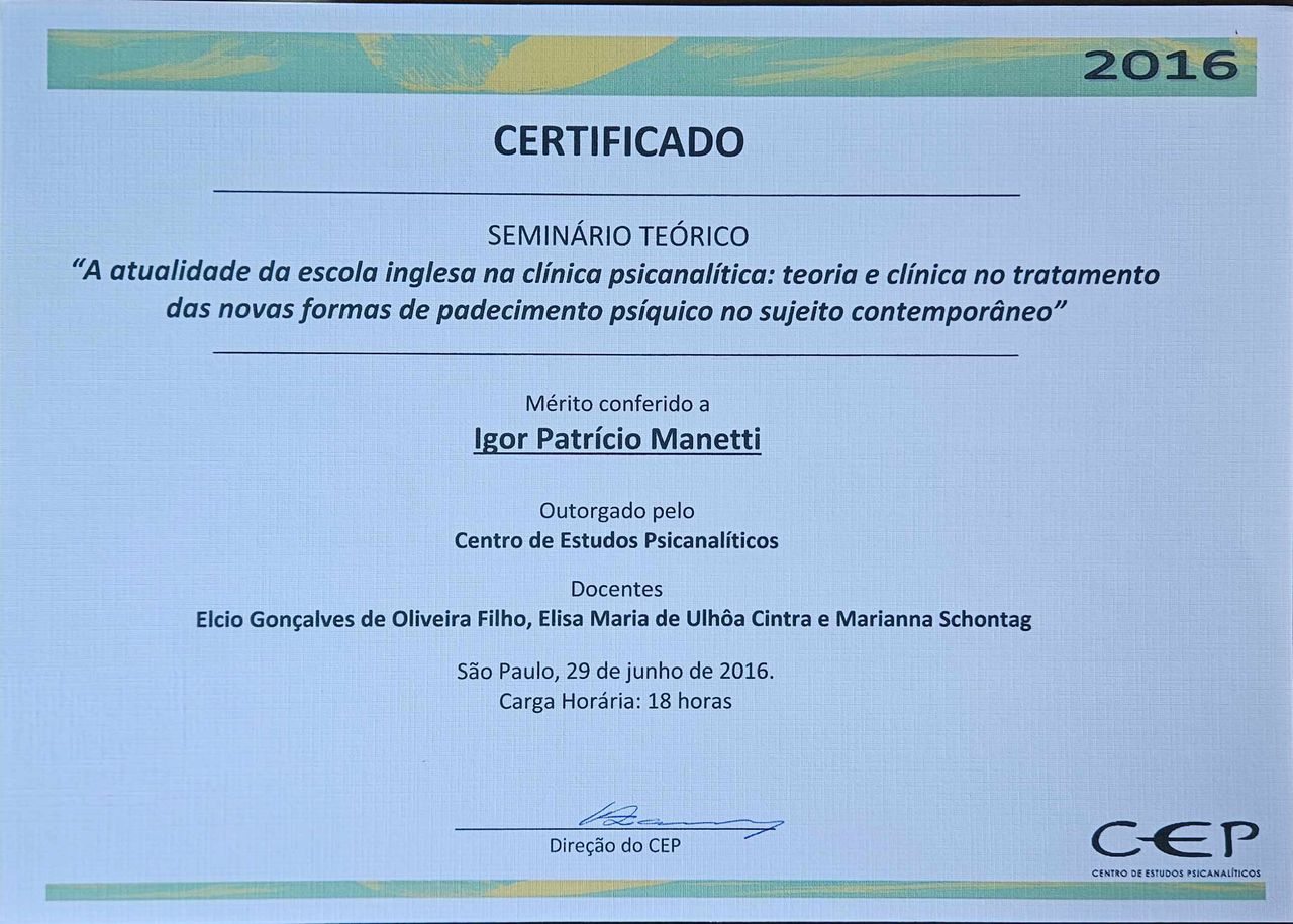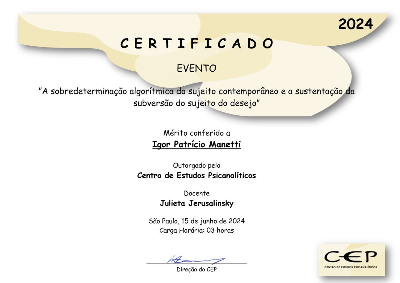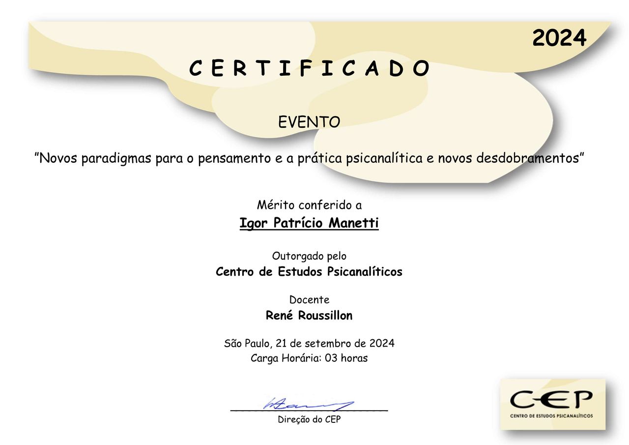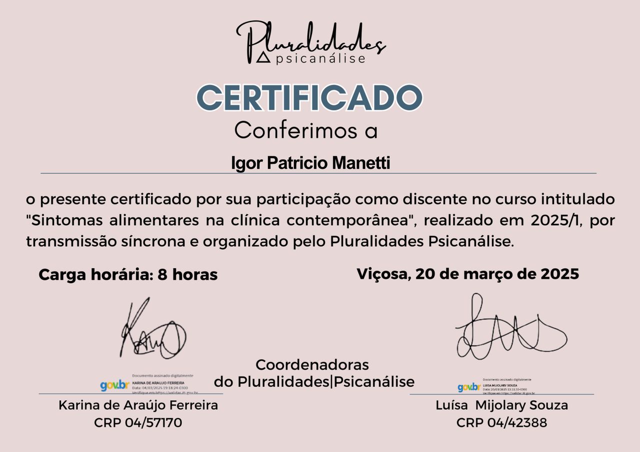 Igor é um profissional extremamente inteligente, que domina as ferramentas da análise lacaniana, fazendo da sessão um local de reflexão muito profunda e assertiva.