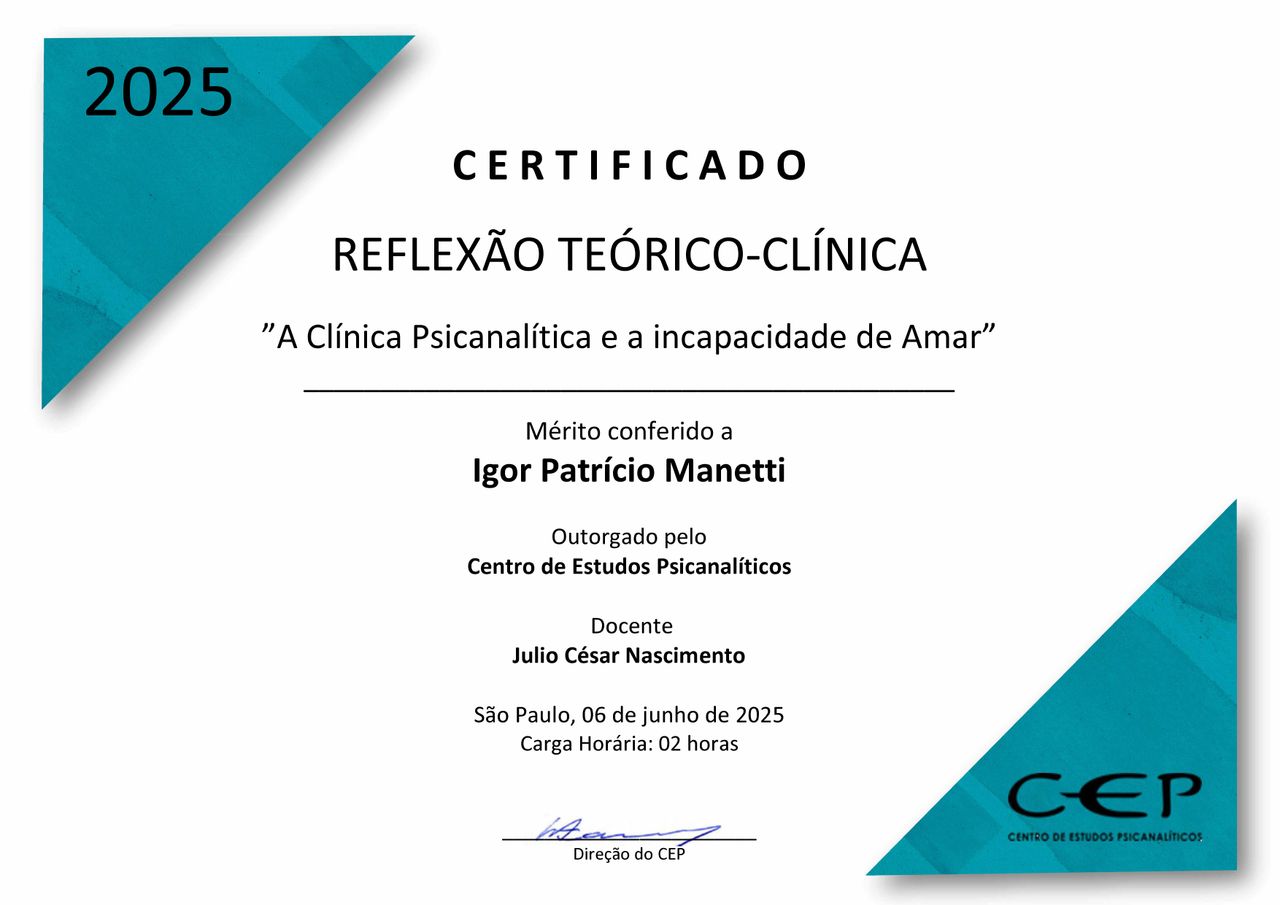 Recomendo muito este psicanalista.• Consultório On-line • Psicanálise •
