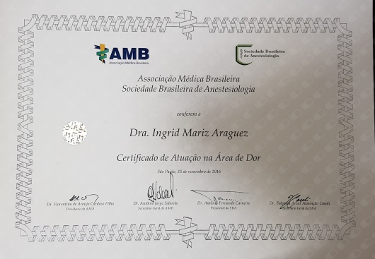 Quais são as principais especialidades de Ingrid Mariz Araguez?Ingrid Mariz Araguez é especialista em dor, anestesiologista. Te mostramos alguns dos serviços oferecidos pelo especialista graças à sua trajetória e vasta experiência: Consulta especialista em dor, Avaliação pré anestésica, Teleconsulta.