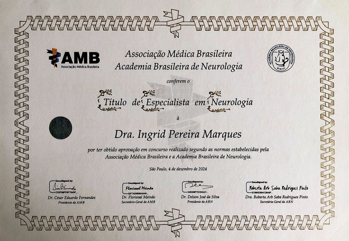 Quais são as principais especialidades de Ingrid Pereira Marques?Ingrid Pereira Marques é neurologista. Te mostramos alguns dos serviços oferecidos pelo especialista graças à sua trajetória e vasta experiência: Atendimento domiciliar, Consulta Neurologista, Ultrassom de mesencéfalo, Doppler transcraniano, Diagnóstico e tratamento cefaleia, Tratamento do AVC (acidente vascular cerebral), Tratamento para distúrbios da memória, Teleconsulta.