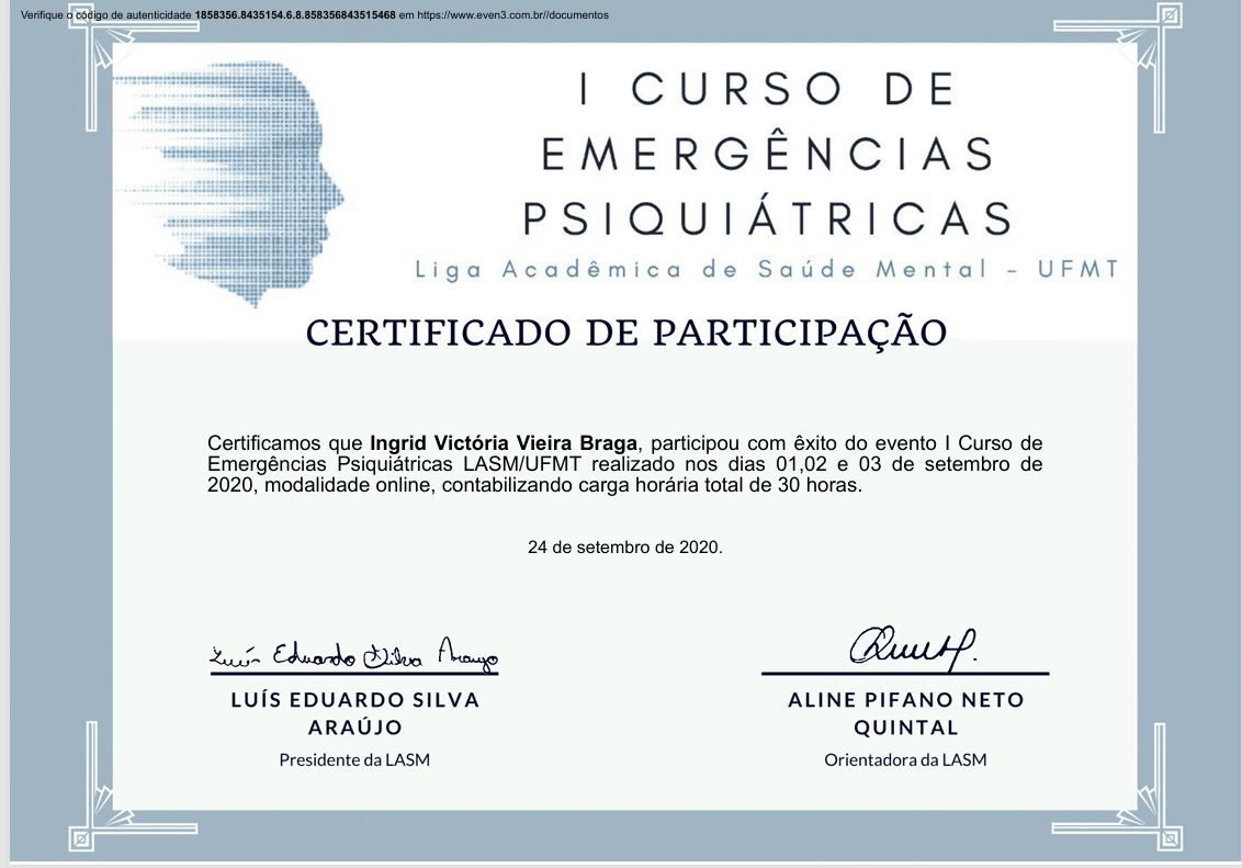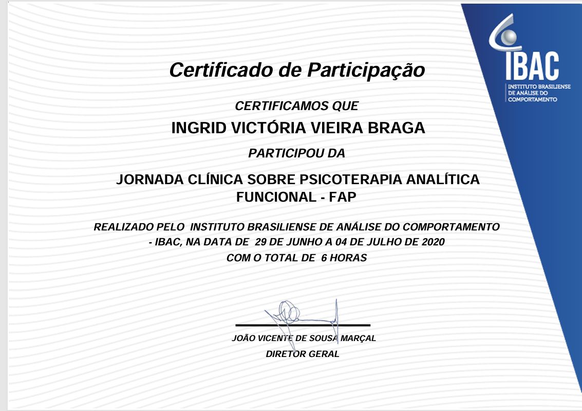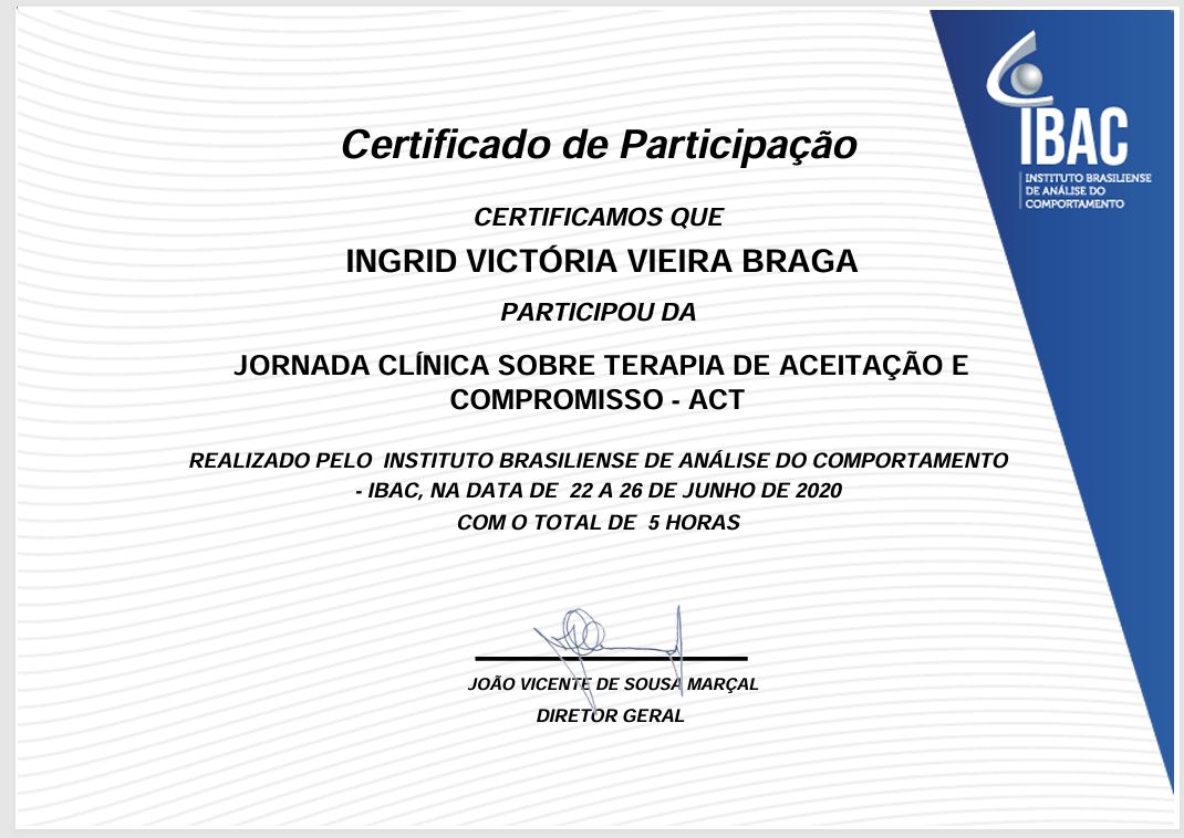 Quando poderia me consultar com Ingrid Victória Vieira Braga?Ingrid Victória Vieira Braga costuma ter horários disponíveis dentro da mesma semana ou para a semana seguinte. Verifique o calendário: você verá o primeiro horário disponível, atualizado em tempo real. Caso o horário sugerido não funcione para você, verifique outras datas. Agendar uma consulta é sempre imediato e gratuito.