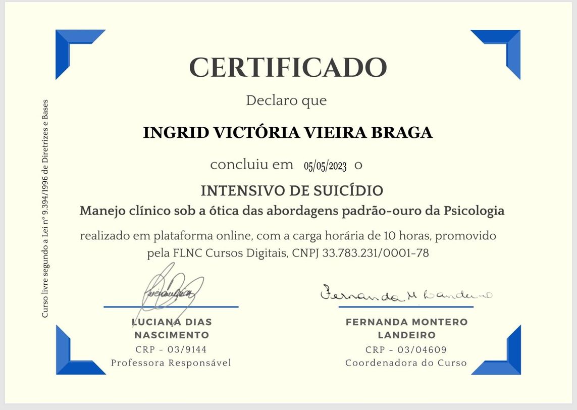 Quais são as principais especialidades de Ingrid Victória Vieira Braga?Ingrid Victória Vieira Braga é psicóloga. Te mostramos alguns dos serviços oferecidos pelo especialista graças à sua trajetória e vasta experiência: Teleconsulta, Acolhimento psicológico breve, Apoio psicológico ao luto, Acompanhamento a pacientes com ansiedade, Acompanhamento a pacientes com: ansiedade,depressão, fobias e traumas psicológicos, Apoio psicológico na gravidez, Atendimento em Psicologia, Atendimento em saúde mental, Tratamento depressão para idosas, Atendimento para a depressão na terceira idade.
