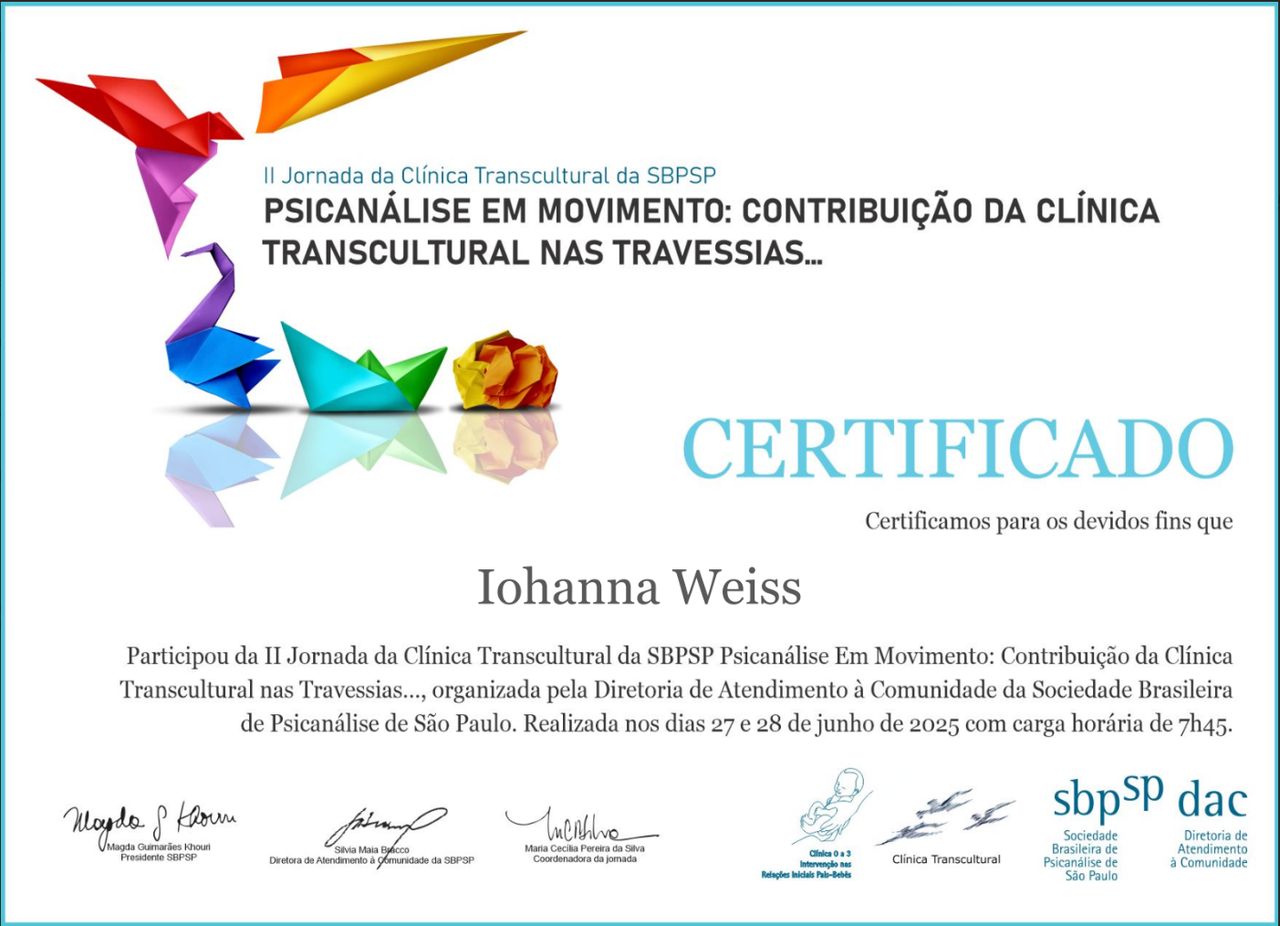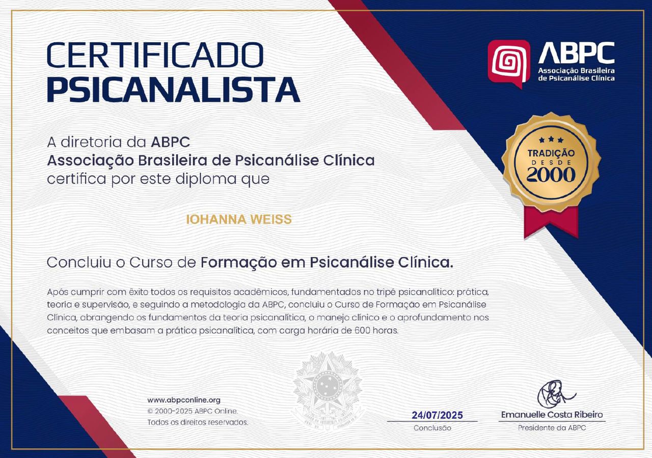 • Iohanna Weiss | Psicanálise Online • Consulta em psicanálise online •