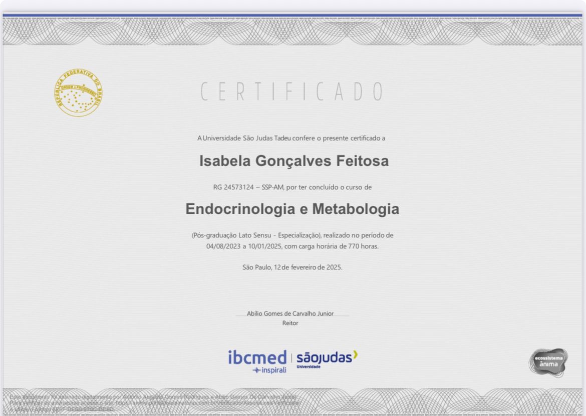 Na clínica da Dra. Isabela Gonçalves Feitosa, oferecemos atendimento médico humanizado e integrativo para pacientes adultos e pediátricos. Médica Pediatra (RQE 130710) com pós graduação em Endocrinologia e Metabologia pela IBCMED e em Obesidade e Emagrecimento (SANAR). Dra. Isabela Feitosa realiza consultas de rotina, acompanhamento de puericultura, além de investigação e tratamento de condições endocrinológicas e metabólicas como: puberdade precoce, baixa estatura, diabetes, obesidade e reposição hormonal. O cuidado é centrado nas necessidades individuais de cada paciente, promovendo um acompanhamento contínuo, personalizado e acolhedor em todas as fases da vida. Atendemos nas regiões de Jacareí e São José dos Campos