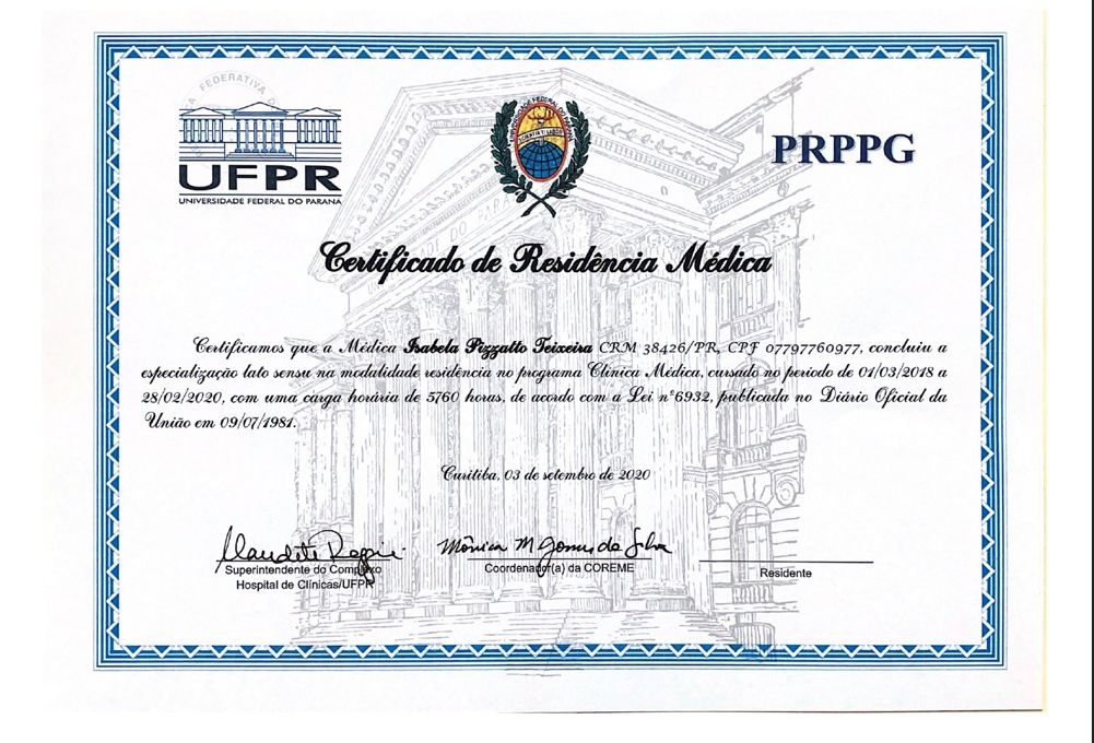 Residência Médica em Clínica Médica no Hospital de Clinicas da UFPR.