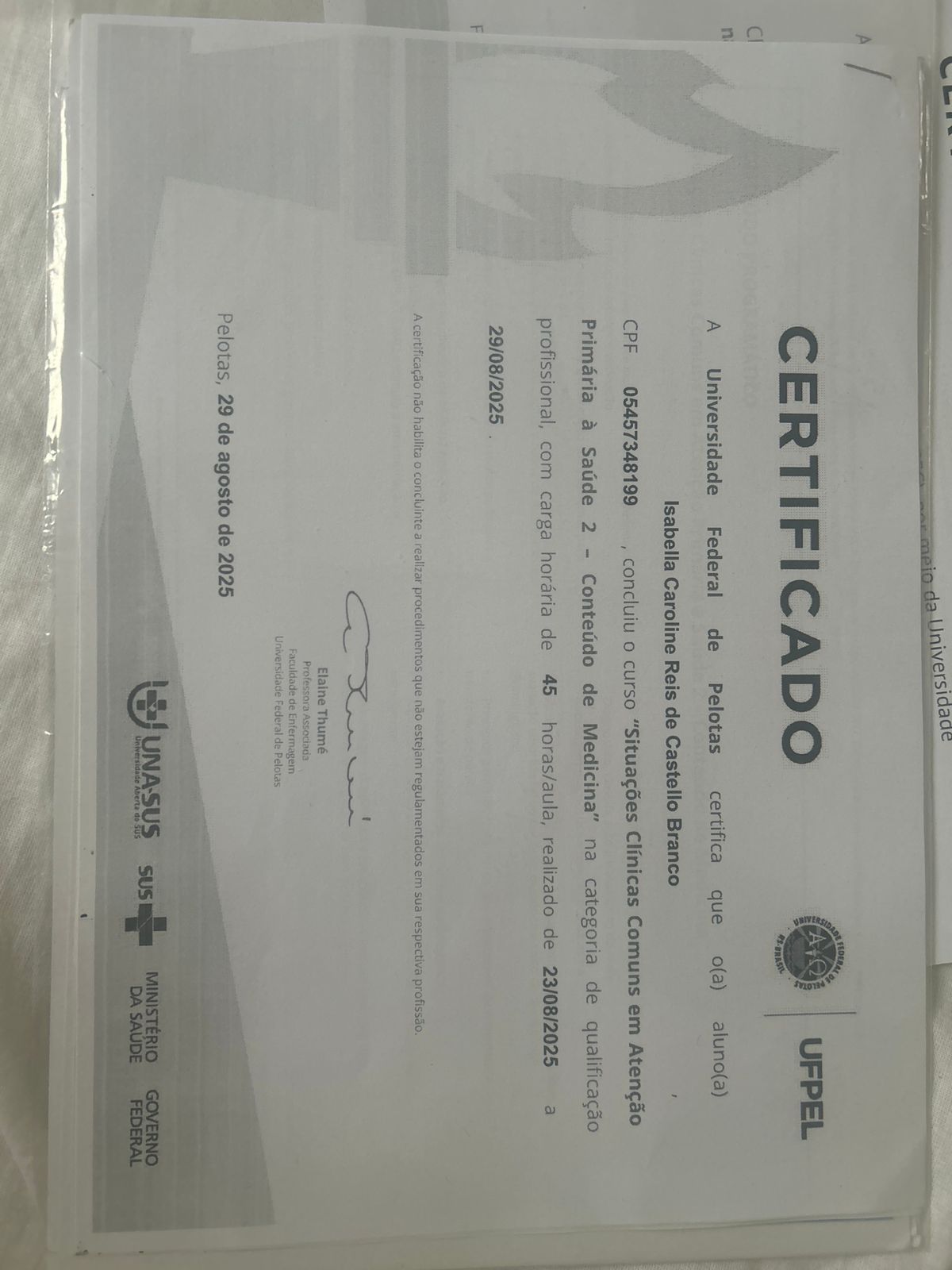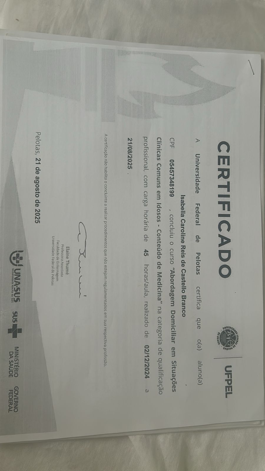 Posso passar por atendimento online com Isabella Caroline Reis de Castello Branco , sem ter que ir até o consultório?Sim, Isabella Caroline Reis de Castello Branco oferece atendimento online. Basta selecionar "Teleconsulta" ao agendar sua consulta e você poderá ver as datas e horários disponíveis.