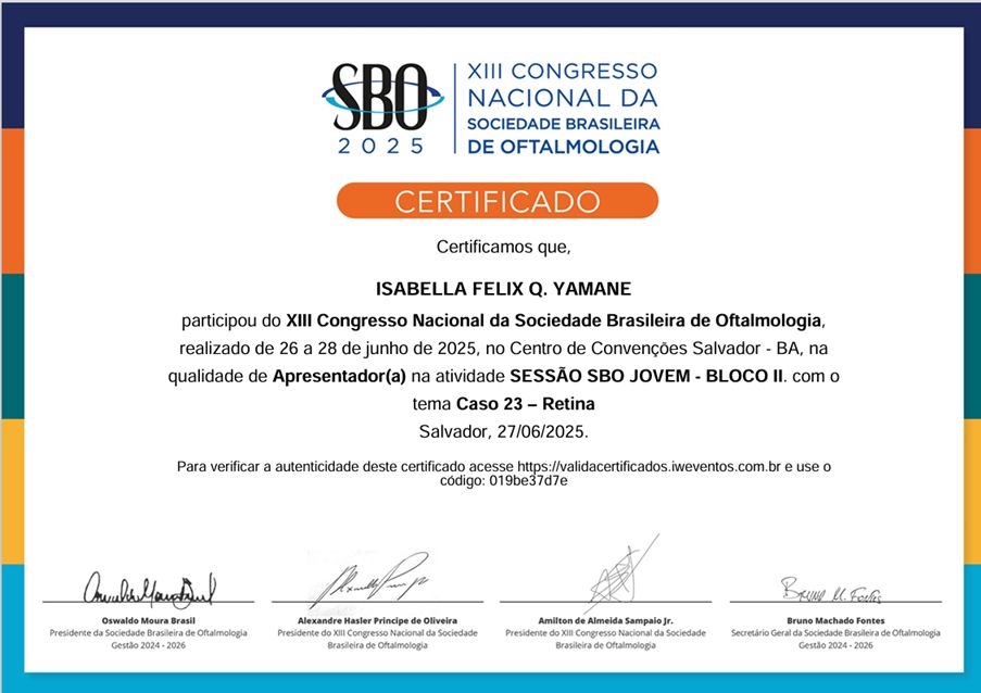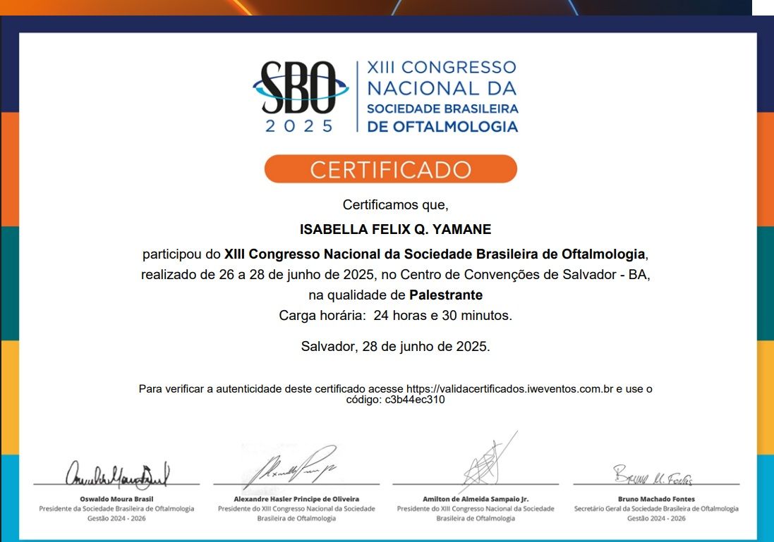 Sou a Dra. Isabella, médica apaixonada pela oftalmologia e pelo cuidado com meus pacientes. Sou especialista em Retina Clínica e Cirúrgica, além de Cirurgia de Catarata.