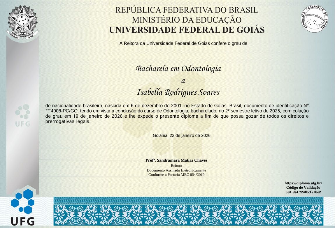 Cirurgiã-Dentista formada pela Universidade Federal de Goiás, com experiência em urgência odontológica, tratamento de infecções dentárias e atuação como clínico geral na saúde primária