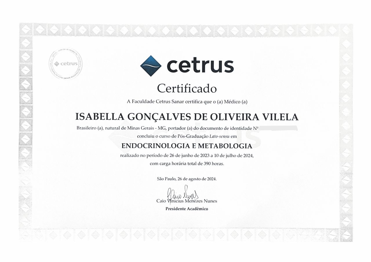 Endocrinologia e metabolismoMédica pela Universidade Federal do Rio de JaneiroMestre em medicina pela Universidade de Lisboa