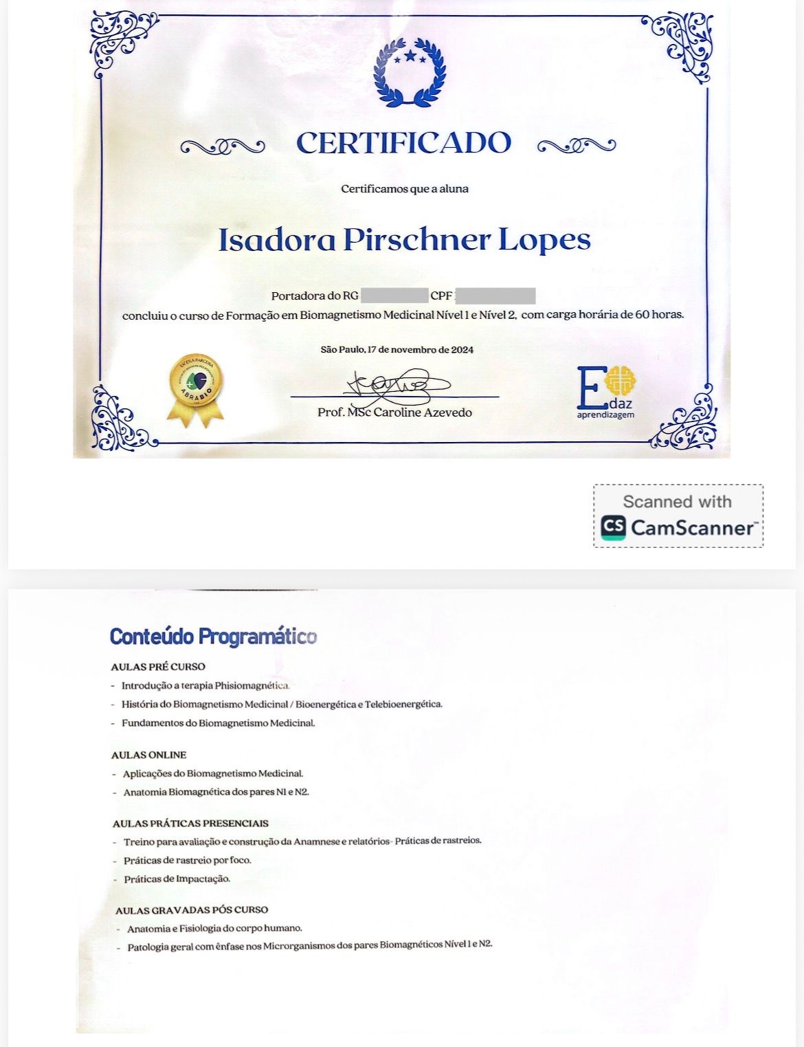 Quais são as principais especialidades de Isadora Pirschner Lopes?Isadora Pirschner Lopes é fisioterapeuta, terapeuta complementar. Te mostramos alguns dos serviços oferecidos pelo especialista graças à sua trajetória e vasta experiência: Biomagnetismo, Pilates.