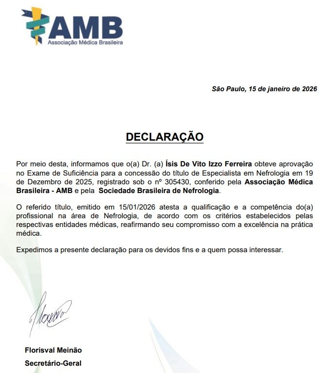 • Dra. Ísis De Vito - Nefrologia e Clínica Médica • Consulta Nefrologia •