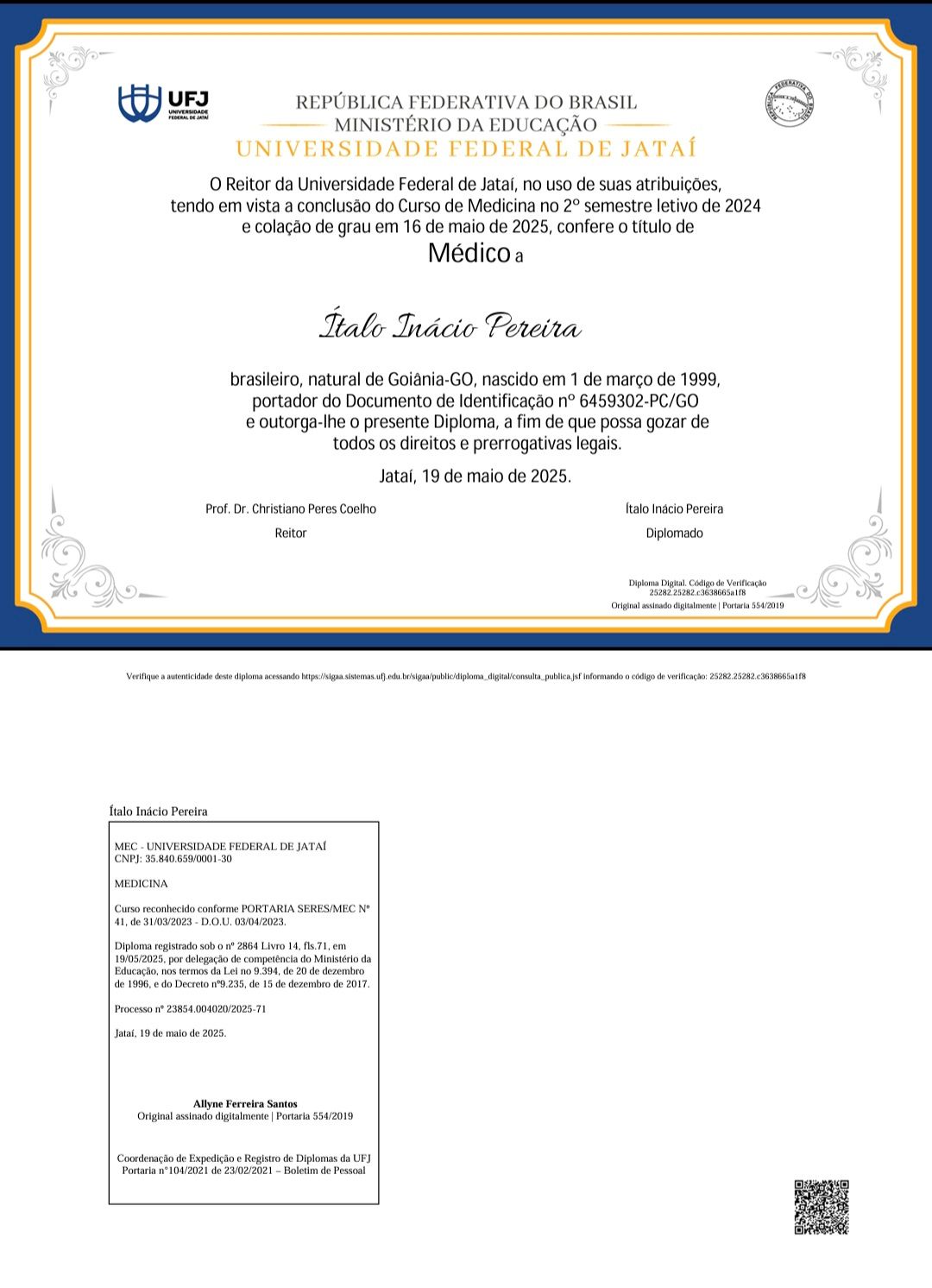 Prazer, meu nome é Ítalo, sou médico generalista formado pela Universidade Federal de Jataí (UFJ).