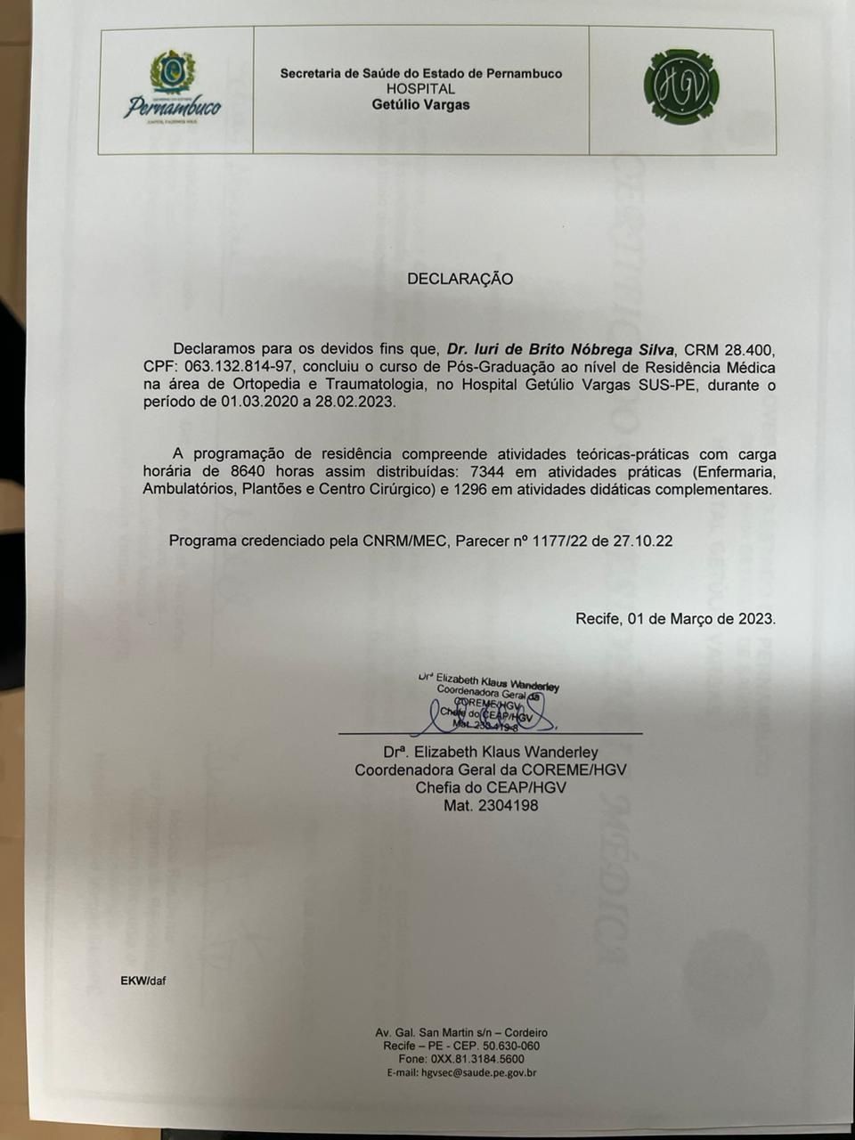 Número de registro: CRM PE 28400 - RQE Nº 15410 (Ortopedia)