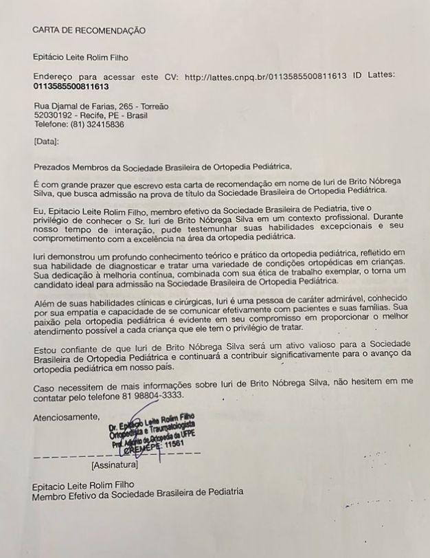 Você já passou por consulta com Dr. Iuri De Brito Nóbrega Silva? Conte aqui como foi. Outros pacientes vão te agradecer por ajudá-los a escolher o melhor especialista.