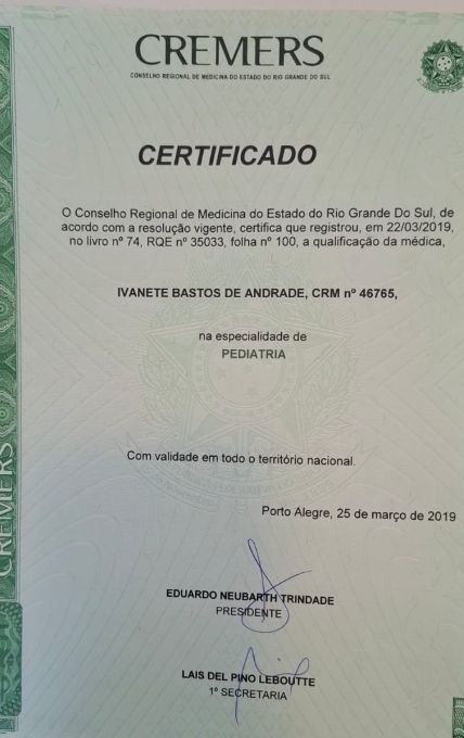 Número de registro: CRM 1108 SC - RQE 4156 CRM 46765 RS - RQE 35033