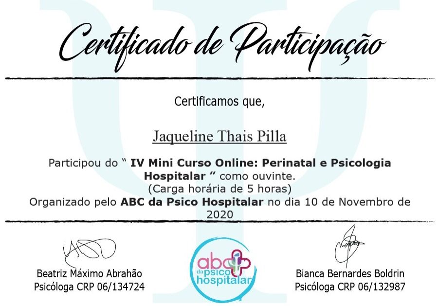 Quais são as principais especialidades de Jaqueline Thais Pilla?Jaqueline Thais Pilla é psicóloga. Te mostramos alguns dos serviços oferecidos pelo especialista graças à sua trajetória e vasta experiência: Psicoterapia online, Tratamento da ansiedade, Tratamento para compulsão alimentar, Tratamento do transtorno de estresse pós-traumático, Tratamento para anorexia nervosa, Tratamento comer emocional, Acompanhamento a pacientes com: ansiedade,depressão, fobias e traumas psicológicos, Tratamento de depressão, Tratamento da fobia social, Avaliação e classificação de casos de bipolaridade.