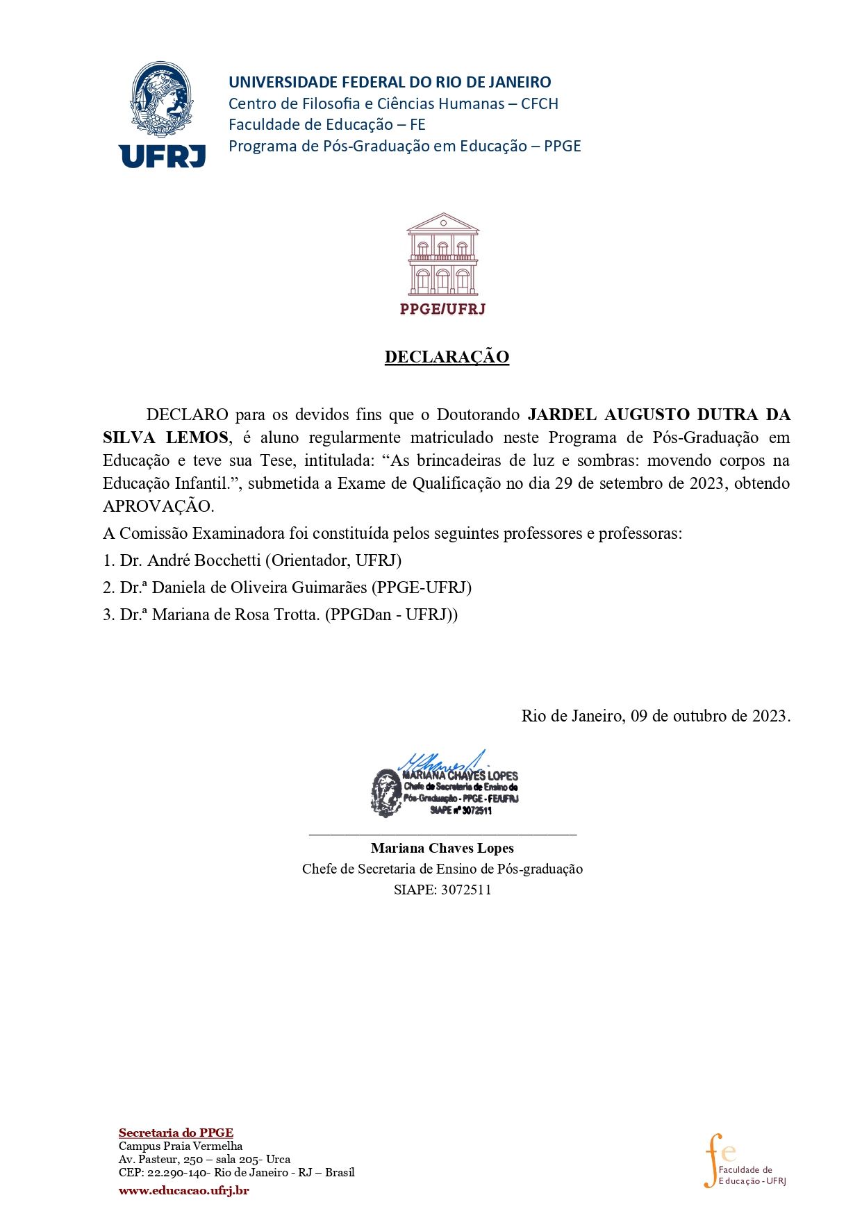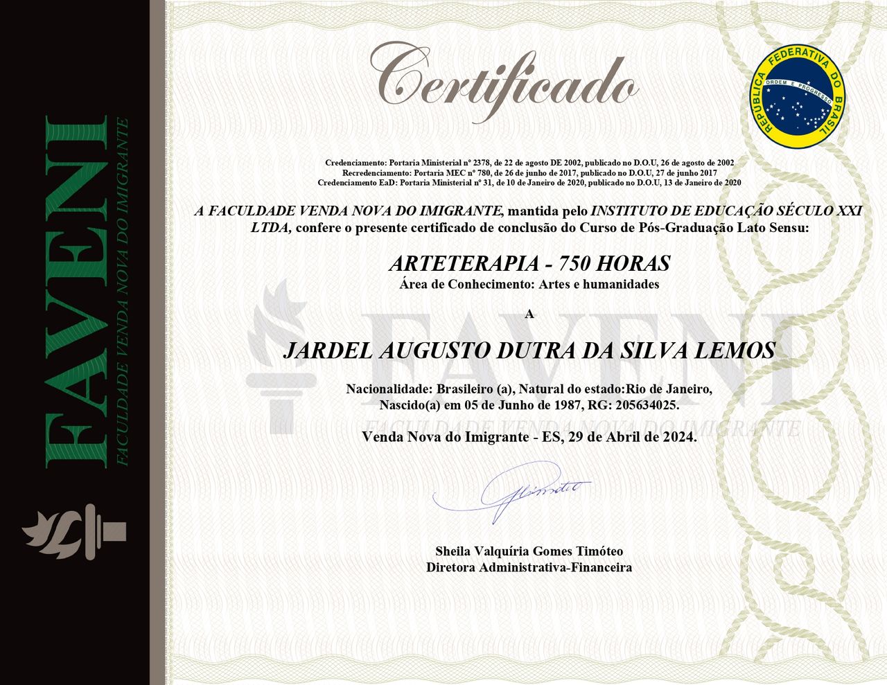 Membro Titular do Conselho Municipal de Cultura do Rio de Janeiro. Doutorando em Educação/UFRJ com ênfase na primeira infância. Mestre em Educação, Cultura e Comunicação/UERJ. Especialista em Saberes e Práticas na Educação Básica - Ênfase em Ensino Contemporâneo de Arte/UFRJ. Especialista em Arteterapia. Especialista em Gestão Escolar. Bacharel em Dança/UFRJ. Licenciado em Geografia/UERJ. Licenciando em Artes Visuais/Faveni. Foi supervisor Técnico e docente do curso de especialização em Design em Carnaval da Faculdade Censupeg. Docente nos cursos de Pós-Graduação Lato Sensu Dança Educacional e Artes Cênicas da Faculdade Censupeg. Docente de Dança Educação nas escolas de ensino formal Fórum Cultural (Niterói) para o segmento da Educação Infantil e docente de Artes na Escola Marista (Barra da Tijuca) nos segmentos da Educação Infantil e Fundamental I.Foi docente contratado da UERJ/FEBF no curso de Pedagogia, docente da Faculdade Aplicada de Teologia e Filosofia/FATEF, ministrando aulas para o curso Dança e Docente da Universidade Veiga de Almeida/Uva. Coreógrafo, bailarino e jurado do quesito Comissão de Frente do carnaval do Rio de Janeiro (17 anos de experiência incluindo grupos e regiões diferentes do país). Criador de vídeodanças, vídeo atividades e vídeo aulas para a primeira infância e fundamental I. Criador do vídeo documentário "Uma Vida de Dança em Companhia". Integrou companhias de dança como: Cia de Dança P24 (Cia subsidiada pelo Centro Coreográfico do Rio de Janeiro), Grupo Misto do Ateliê Coreográfico, Segmentos Cia de Dança, cia de Dança Contemporânea da UFRJ. Trabalhou com coreógrafos/diretores/carnavalescoas como Lilibeth Cuenca (Dinamarca), Gislayne Cavalcanti, Luciana Yegros, Regina Miranda, Fernando Bicudo. Paulo Barros, Laíla, Rubens Velloso, entre outros.Foi bolsista do Laboratório de Arte Educação/LAE-UFRJ (monitor da disciplina Introdução ao Estudo da Corporeidade); do Núcleo de Pesquisa em Dança de Salão do Departamento de Arte Corporal/DAC - UFRJ; e do Grupo de Pesquisas em Artes do Corpo/GPAC - UFRJ. Integrou como docente de dança os Projetos: Segundo Turno Cultural da Sec. Municipal de Cultura do RJ e Mais Educação da Sec. Municipal de Educação de Niterói/RJ. Esteve em cartaz com musicais como "A Febre do Samba" no Sesi/RJ (bailarino), "Volta ao Mundo", teatro AMF Unimed Fluminense (coreógrafo) e o espetáculo "Profanações" no Oi Futuro/RJ (bailarino). Foi professor e coreógrafo do projeto social "Grupo de Dança Cubango" onde coreografou o espetáculo "Teimosias da Imaginação" no teatro Municipal de Niterói.Foi responsável pela Direção Geral, produção e coreografias dos musicais infantis "A História das Coisas" em 2013, "O Grande Circo do Mundo" em 2014, "Era uma vez..." em 2015, " Maravilhas" em 2016, O Pequeno Grande Príncipe em 2017, Fórum Pelo Mundo em 2018, "Uma Tarde no Museu" em 2019, todos apresentados no teatro AMF Fluminense em Niterói/RJ. Recebeu o troféu Dodô da Portela de coreógrafo revelação e outras premiações como: Mérito da Liberdade Zumbi dos Palmares, pela Federação Brasileira dos Acadêmicos das Ciências, Letras e Artes e a Medalha Cultural - Belas Artes, Letras e Ciências, pela Academia Niteroiense de belas Artes - Letras e Ciências. Recebeu premiações de melhor comissão de frente do carnaval carioca. Atua principalmente nos seguintes temas: Musical infantil e comissão de frente/carnaval. Dança educação na educação infantil. Videodança, corpo e tecnologias e Arteterapia e crianças com TEA.