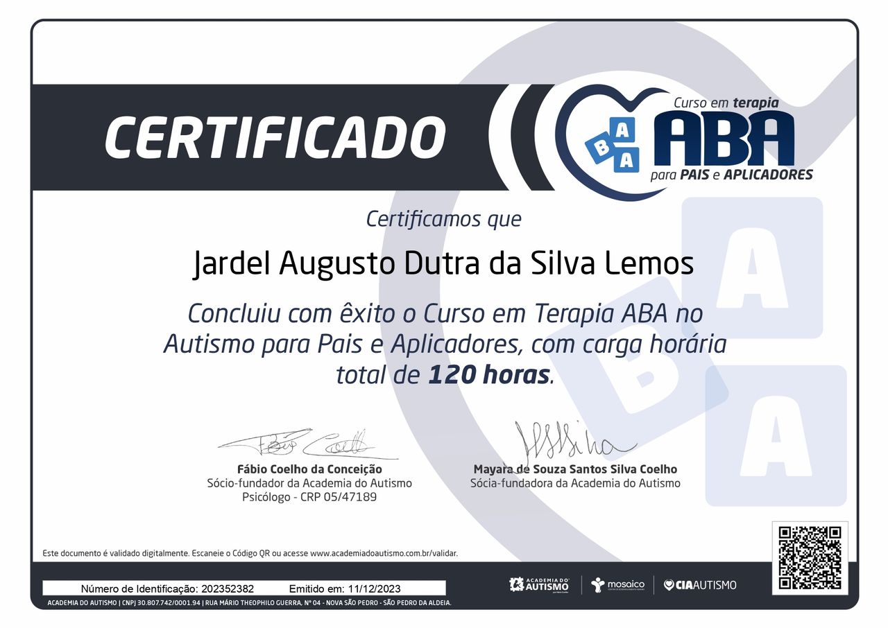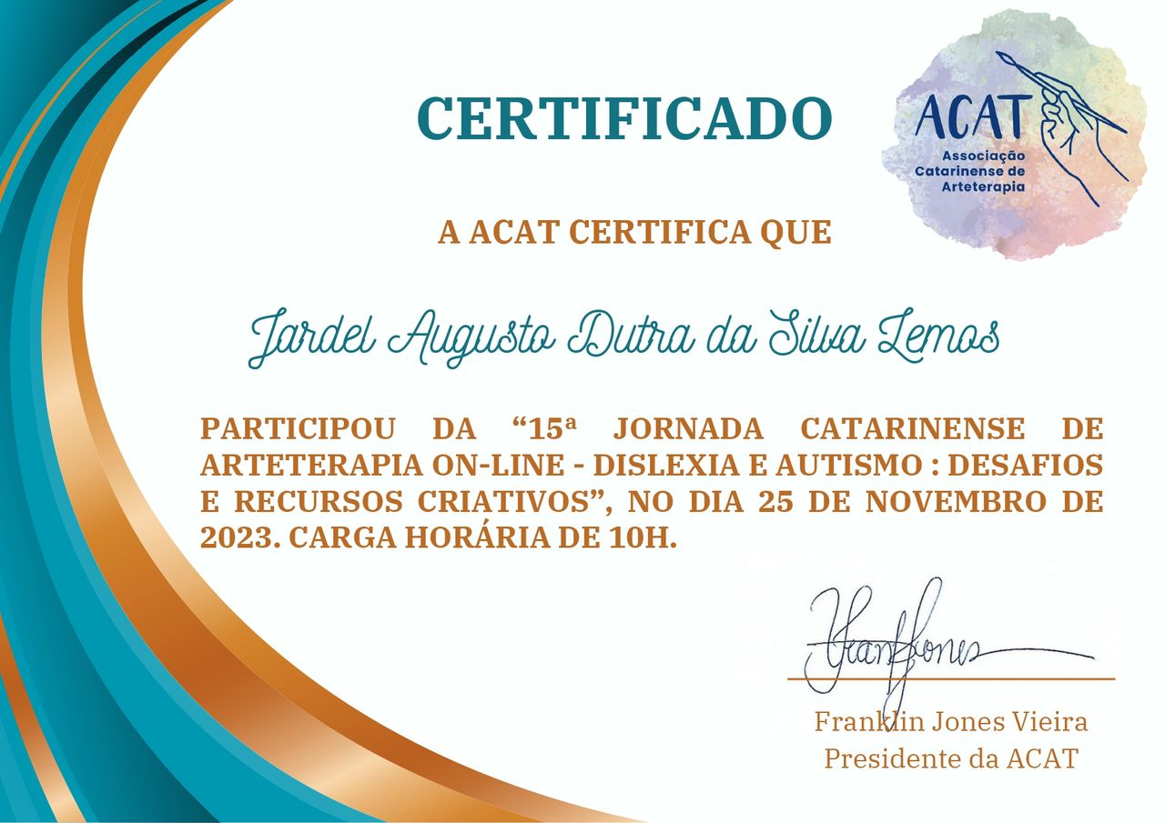 Quais são as principais especialidades de Jardel Augusto Dutra da Silva Lemos?Jardel Augusto Dutra da Silva Lemos é terapeuta complementar. Te mostramos alguns dos serviços oferecidos pelo especialista graças à sua trajetória e vasta experiência: Arteterapia, Atendimento para TEA e TDAH (infantil).