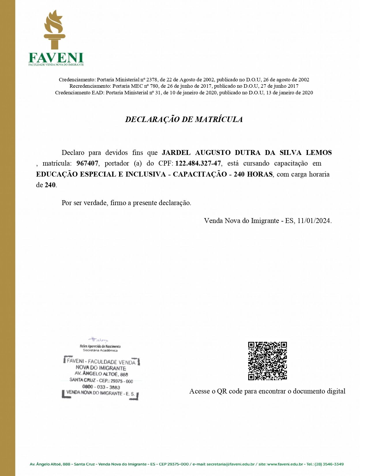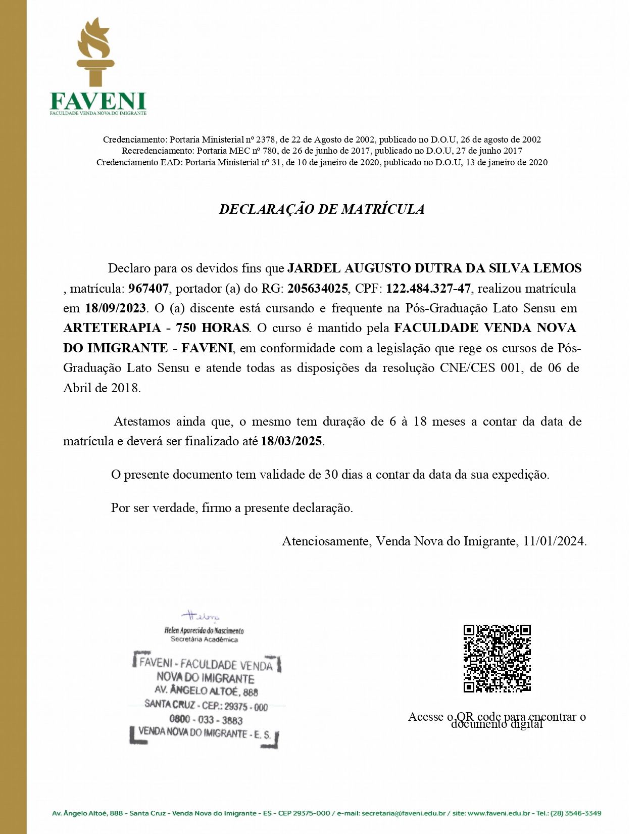 Número de registro: Certificado Apresentado