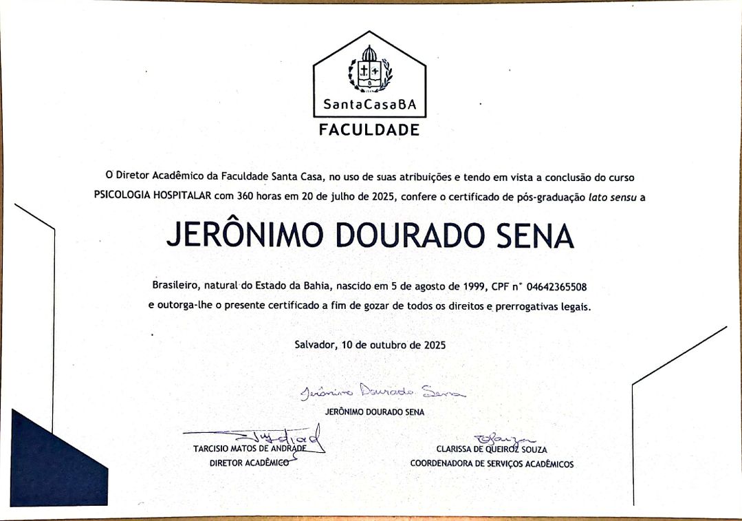 • Jerônimo Dourado Sena - Teleconsulta • Consulta Psicologia •