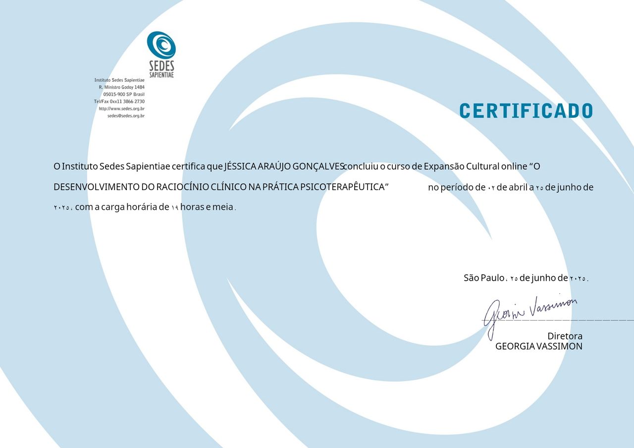 A Jéssica é uma terapeuta maravilhosa. Ela tem acolhido muito as minhas demandas de maneira sensível e perspicaz. Acolhedora, atenciosa, uma excelente profissional.