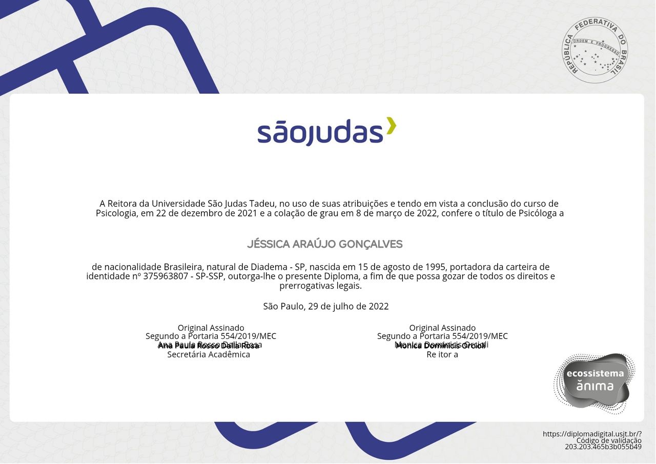 Quais são as principais especialidades de Jéssica Araújo Gonçalves?Jéssica Araújo Gonçalves é psicóloga. Te mostramos alguns dos serviços oferecidos pelo especialista graças à sua trajetória e vasta experiência: Sessão em psicologia, Atendimento em Psicologia, Atendimento psicológico, Consulta Psicologia, Psicoterapia de abordagem psicanalítica, Psicanálise - adulto, Psicanálise com adolescentes, Tratamento psicanalítico para adultos, Psicanálise lacaniana, Psicanálise.