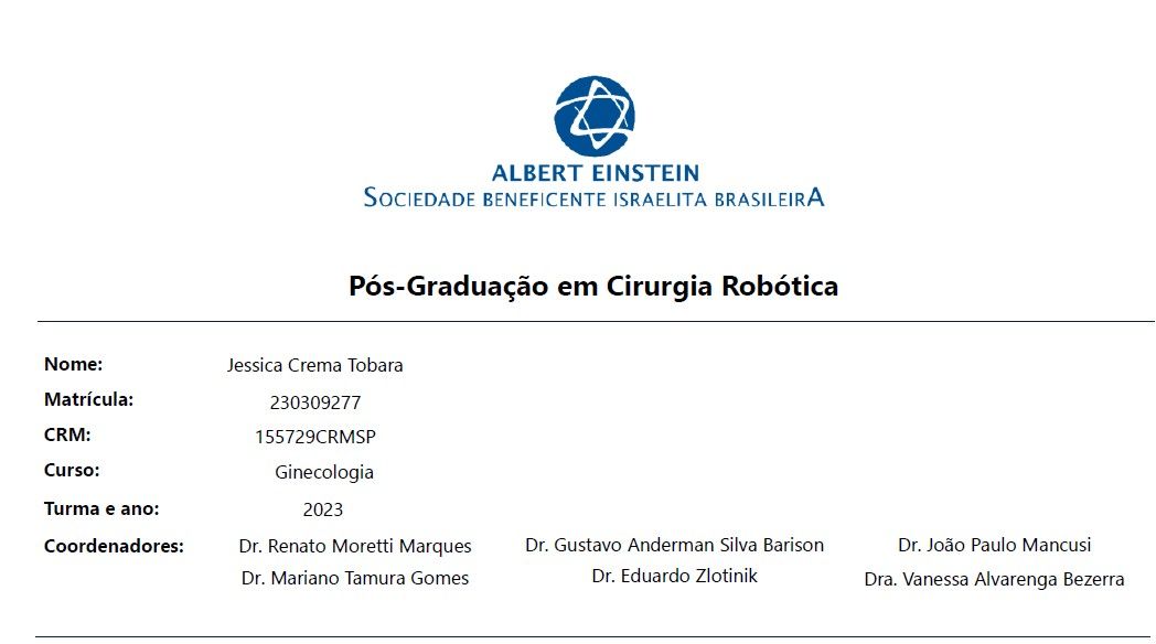 Sou médica ginecologista formada pela Faculdade de Ciências Médicas de Santos, com especialização em cirurgia minimamente invasiva, robótica e oncologia ginecológica. Fiz parte da minha formação em instituições de referência, como a Santa Casa de São Paulo, o Hospital Israelita Albert Einstein e o Hospital Pérola Byington, e também sou Mestre em Biologia e Inovação em Saúde com foco de pesquisa em HPV.