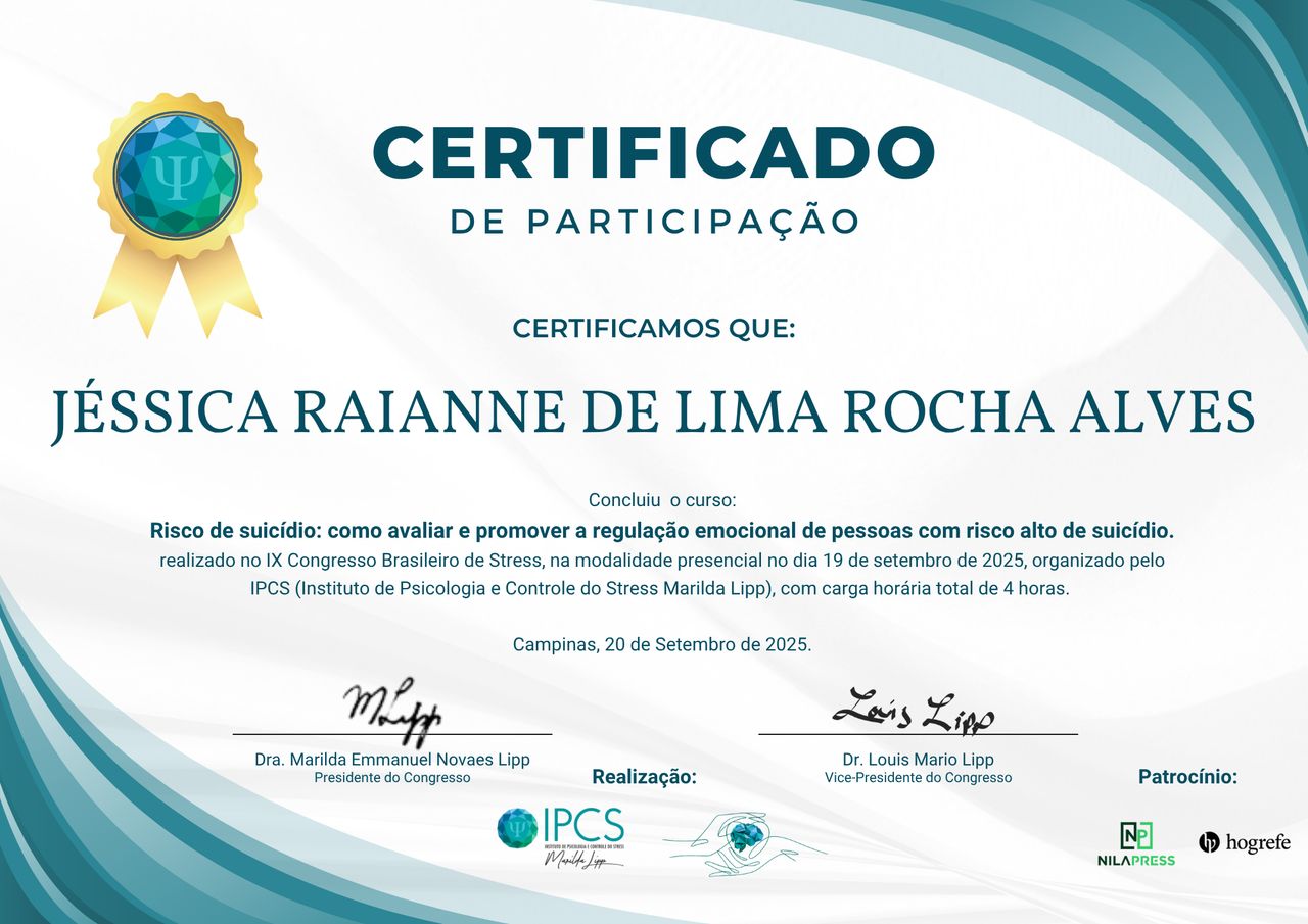 Certificada em avaliação de estresse no ambiente de trabalho e analista comportamental.