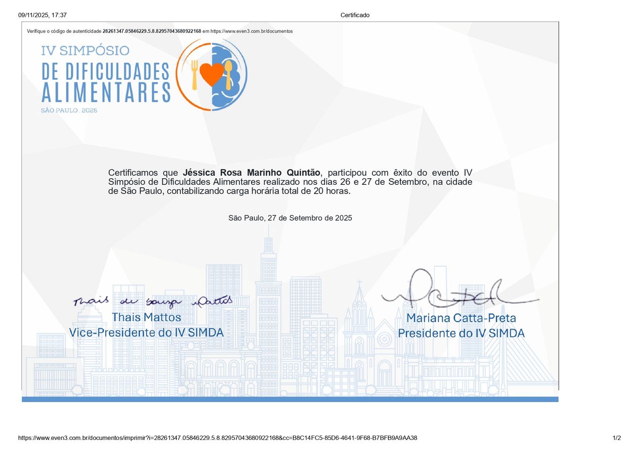 Por alguns meses ela foi a profissional responsável para terapia alimentar das minhas filhas Yasmin e Laura, gostavam muito da Jéssica e até apelidaram ela de mister cheff. Então super indico. Pelo seu excelente trabalho e dedicação.