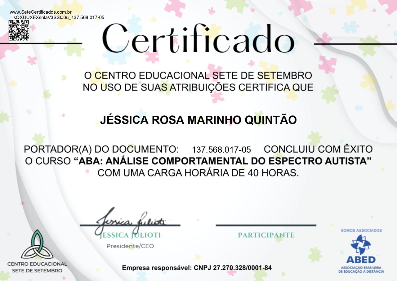 Jessica tem realizado trabalho lindo com crianças e duas famílias. Dedicação e estudo!