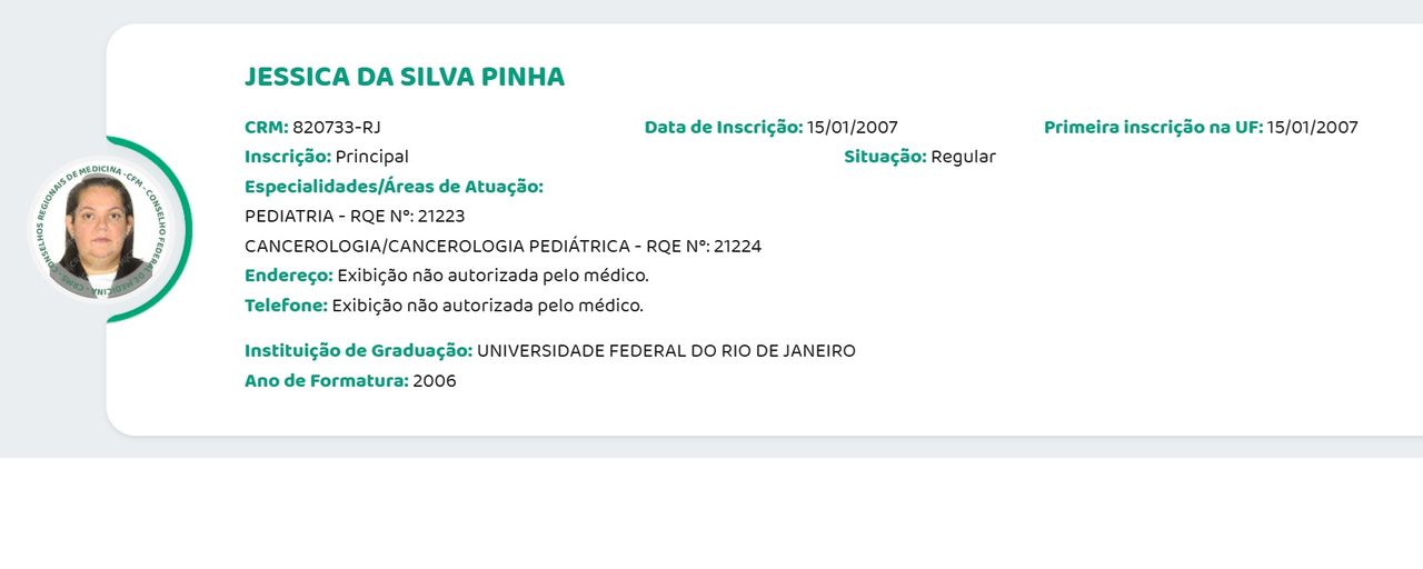 Dra Jessica é a melhor médica que ja conheci e olha que já trabalhei na indústria farmacêutica e chegávamos a visitar mais de 1000 médicos diferentes! Ela é uma profissional acima da média, nos orienta e nos auxilia em 120%das nossas demandas sempre com muito amor e muita atenção com o bebê e com a mamaezinha! Amamos ela! E gostaria de deixar registrado toda nossa gratidão