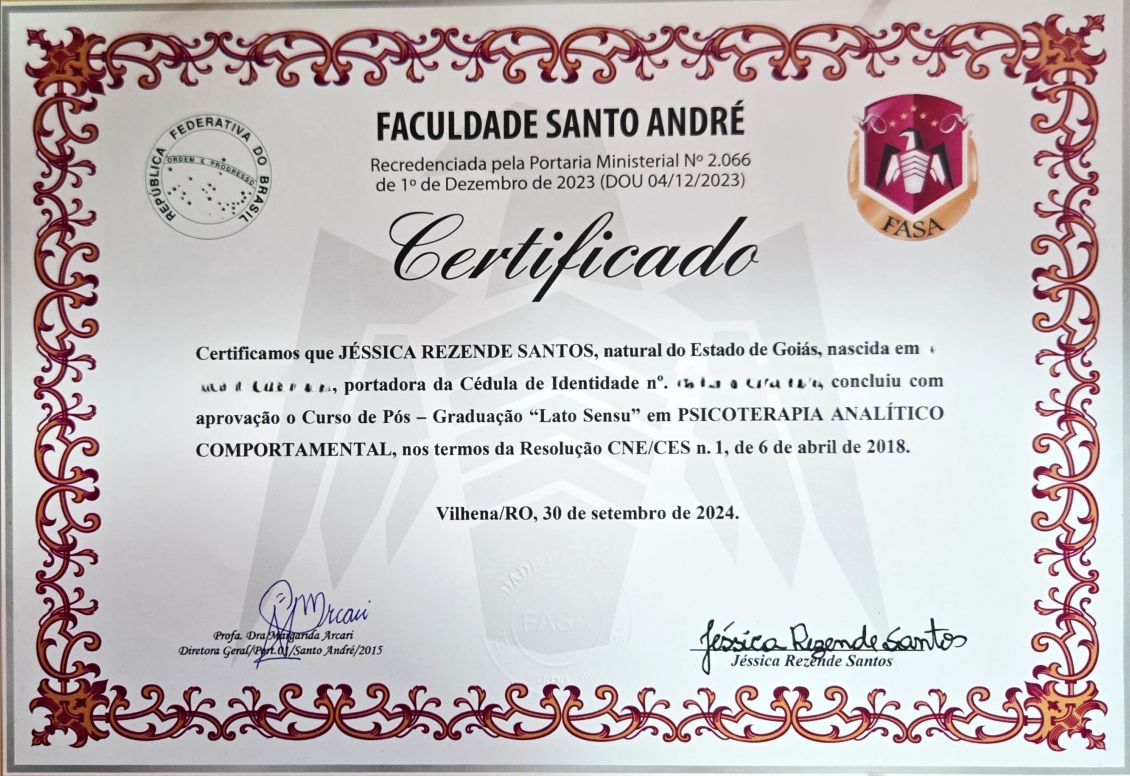 Pós-graduada pelo Instituto Goiano de Análise do Comportamento (IGAC) em Psicoterapia Analítico Comportamental.
