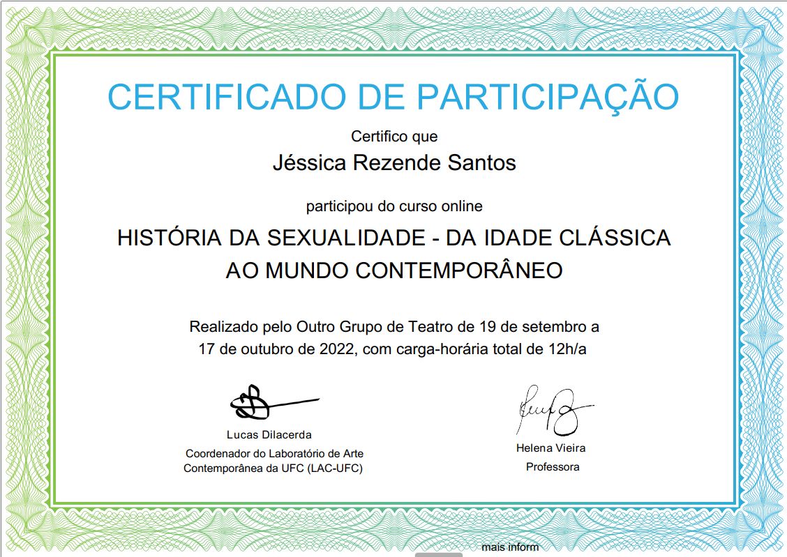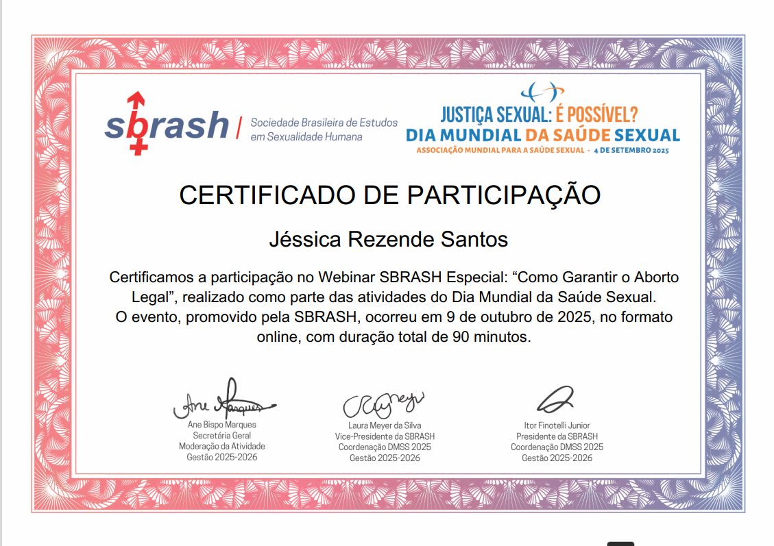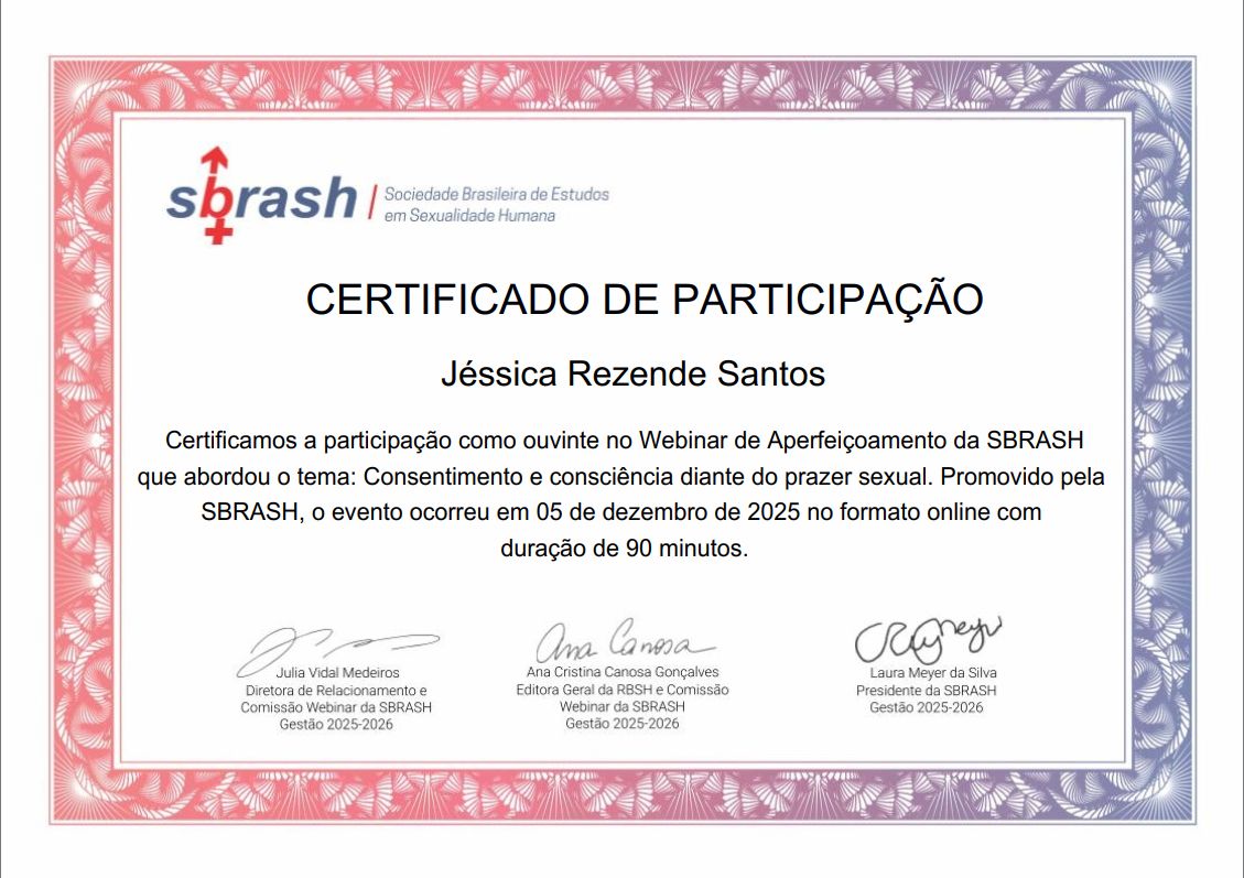 Capacitada em Sexualidade de Gênero através de cursos pelo extinto Programa Florescer e pelo Instituto de Saúde LGBTIA+ (Saudiversidade).