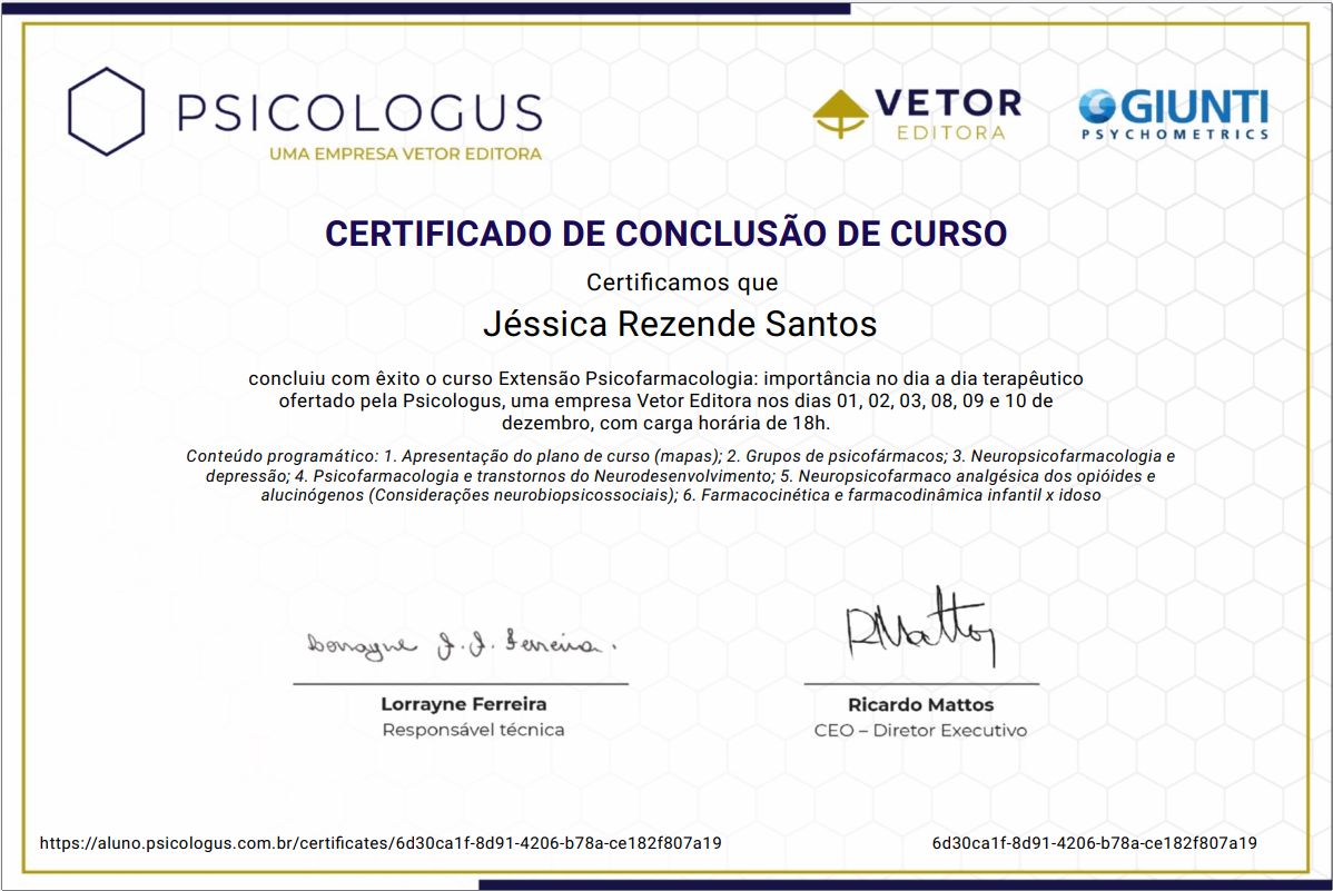 Quais são as principais especialidades de Jéssica Rezende Santos?Jéssica Rezende Santos é psicóloga. Te mostramos alguns dos serviços oferecidos pelo especialista graças à sua trajetória e vasta experiência: Psicoterapia online, Psicoterapia, Consulta psicólogo, Consulta psicóloga, Consulta psicologia online, Psicoterapia comportamental, Terapia Comportamental, Psicoterapia afirmativa, Psicoterapia para brasileiros no exterior, Psicoterapia para empoderamento pessoal.