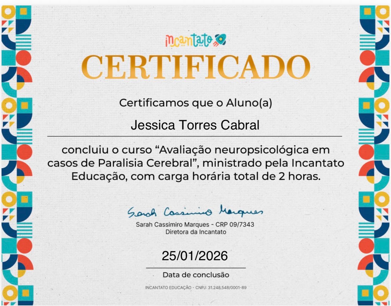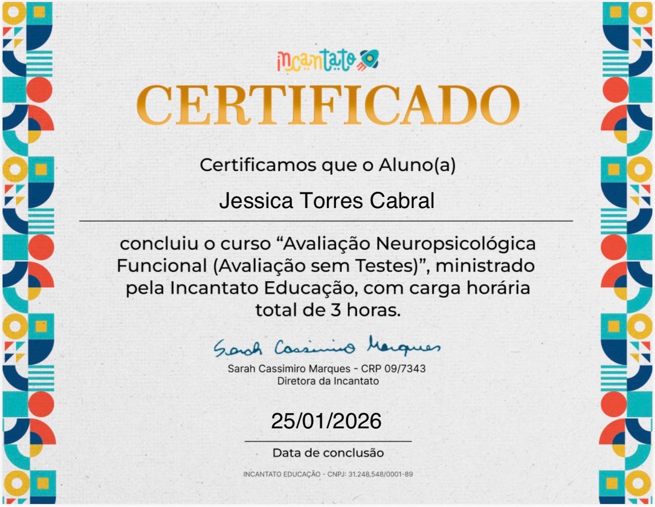 Especialista em NeuropsicologiaGraduada pela Pontifícia Católica (PUC)Avaliação Neuropsicológica