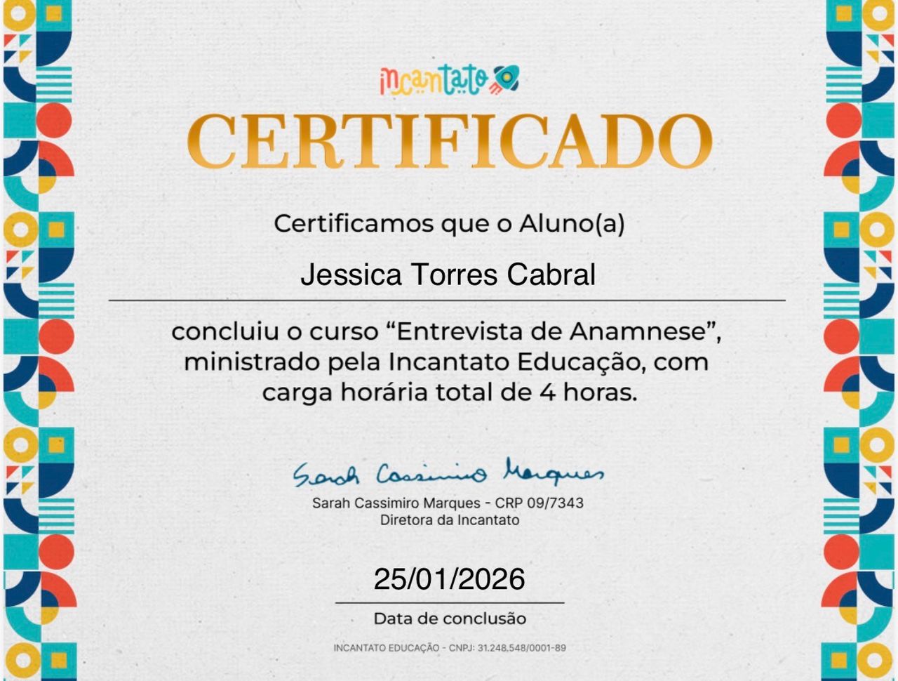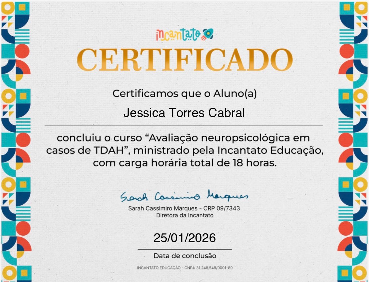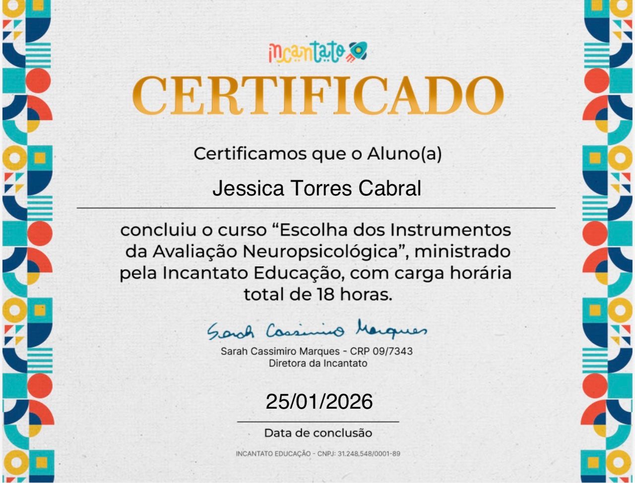Olá, seja bem-vindo à minha página! Há mais de 10 anos atuo na área da Psicologia, construindo uma trajetória dedicada à saúde mental e ao cuidado integral das pessoas. Minha experiência abrange diversas especialidades: Saúde Mental e Atenção Psicossocial , Neuropsicologia , Psicopedagogia, Psicologia Analítica Junguiana, Psicanálise, Psicopatologia, atuação como Perita Judicial, Avaliação Neuropsicológica e também a implementação de NR-1 Corporativa.