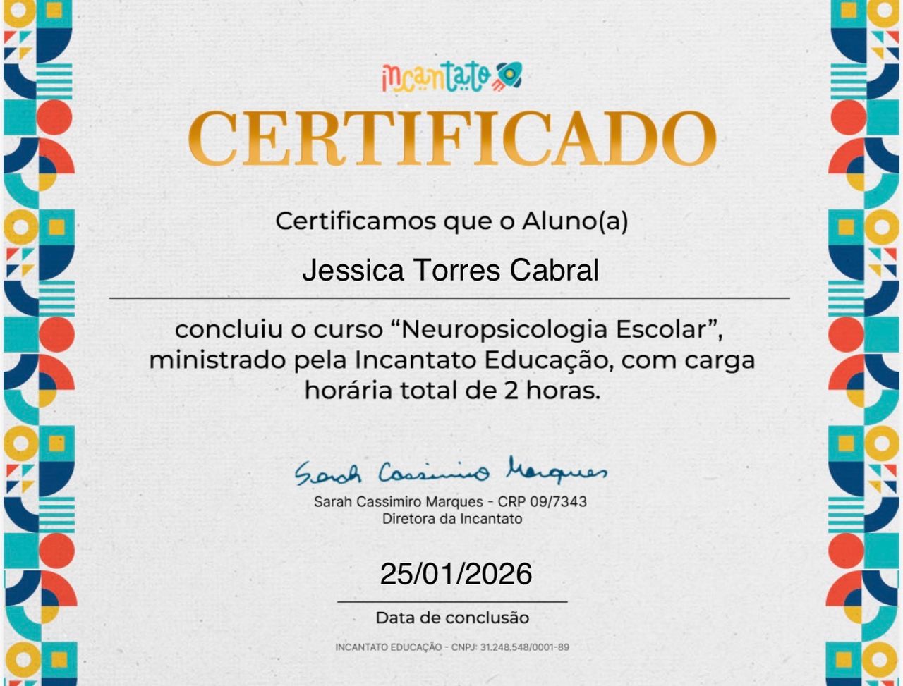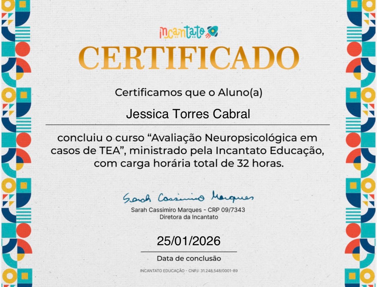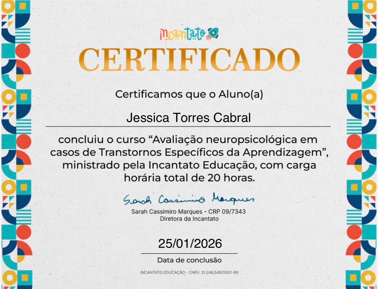 Olá, seja bem-vindo à minha página! Há mais de 10 anos atuo na área da Psicologia, construindo uma trajetória dedicada à saúde mental e ao cuidado integral das pessoas. Minha experiência abrange diversas especialidades: Saúde Mental e Atenção Psicossocial , Neuropsicologia , Psicopedagogia, Psicologia Analítica Junguiana, Psicanálise, Psicopatologia, atuação como Perita Judicial, Avaliação Neuropsicológica e também a implementação de NR-1 Corporativa.